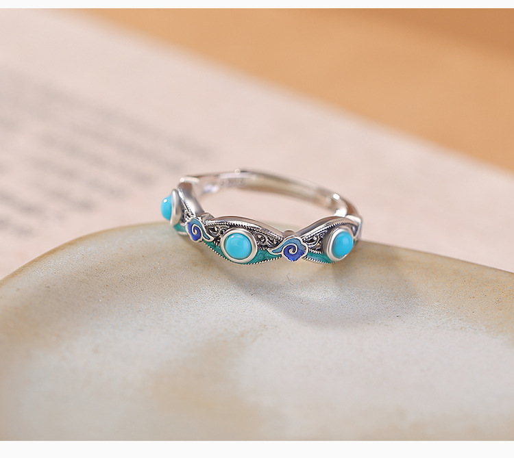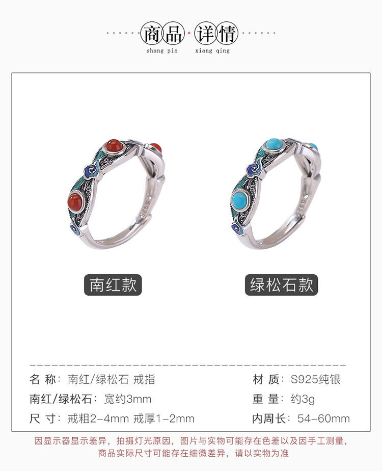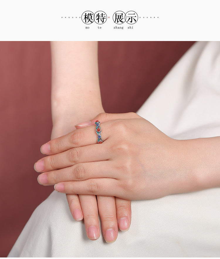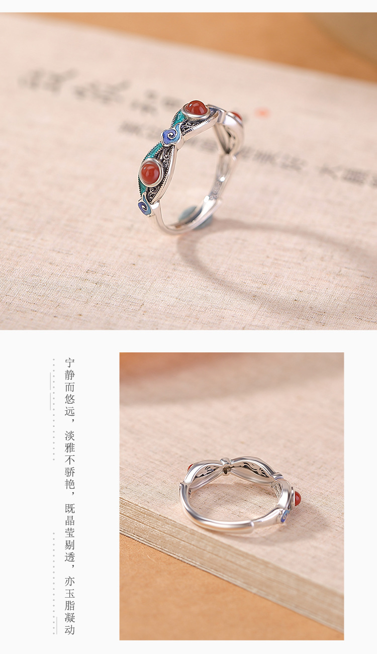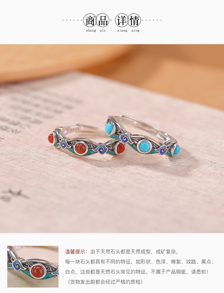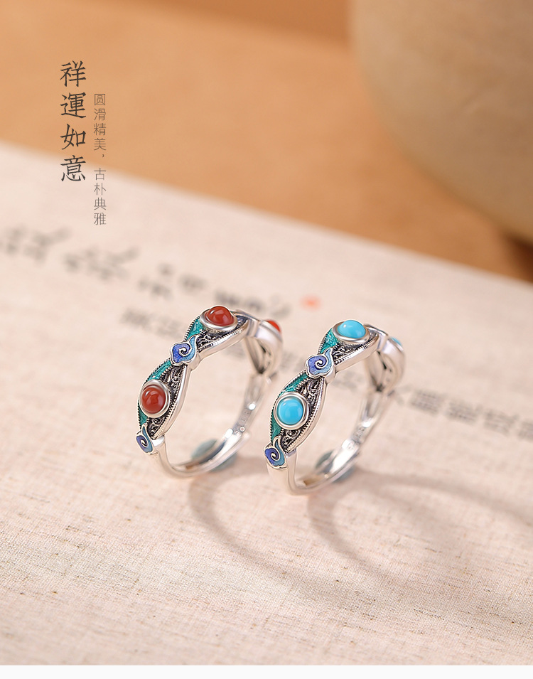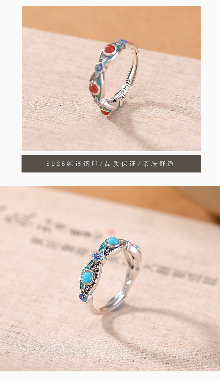 【祥云景和】S925纯银南红玛瑙绿松石珐琅祥云圆形古风戒指【CW-JZ07538】