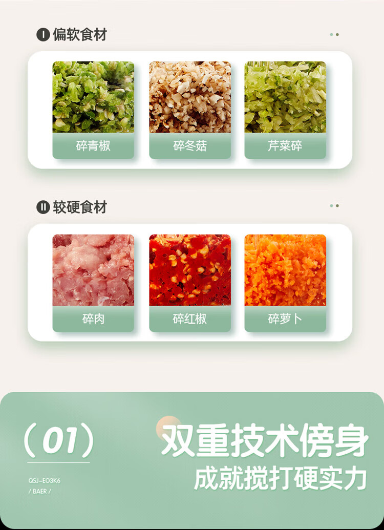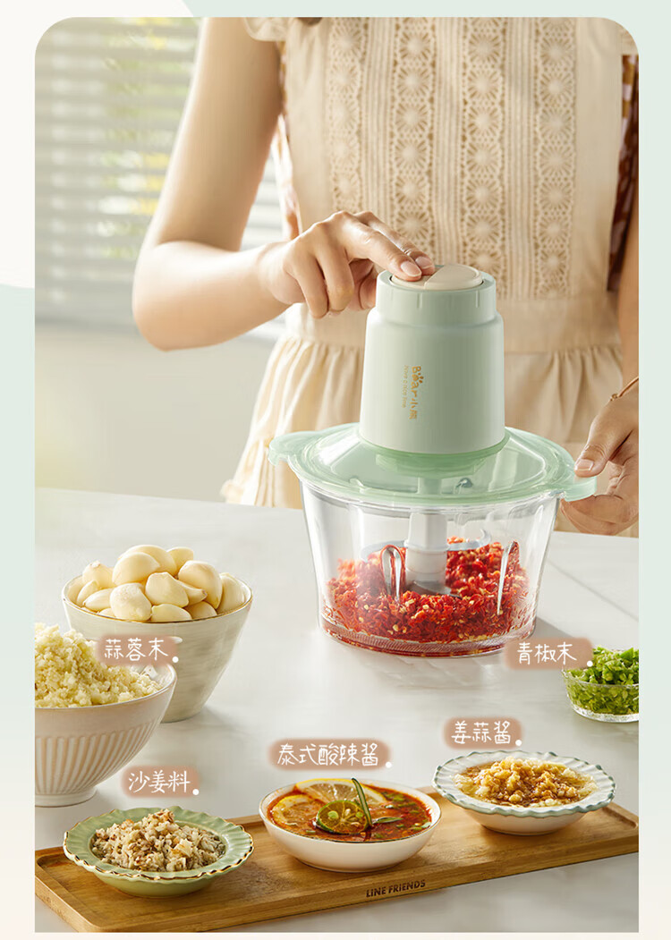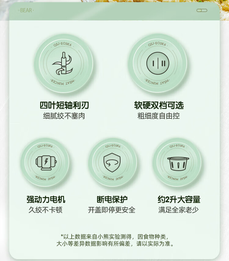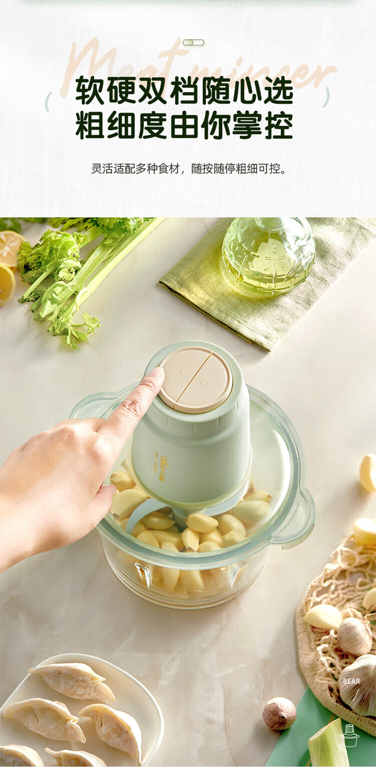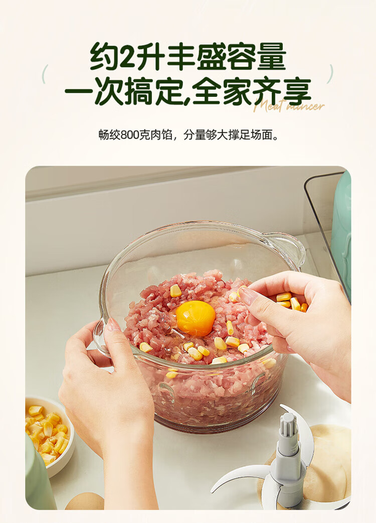 小熊(Bear)绞肉机家用大容量2L绞馅机 碎肉机 电动多功能料理搅拌打肉饺子肉馅蒜蓉机QSJ-E03K6