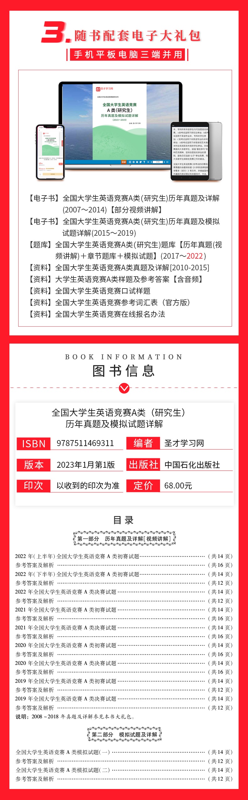 全国大学生英语竞赛A类(研究生)历年真题及模拟试题详解 提供全国大学生英语竞赛辅导方案 中国石化出版社