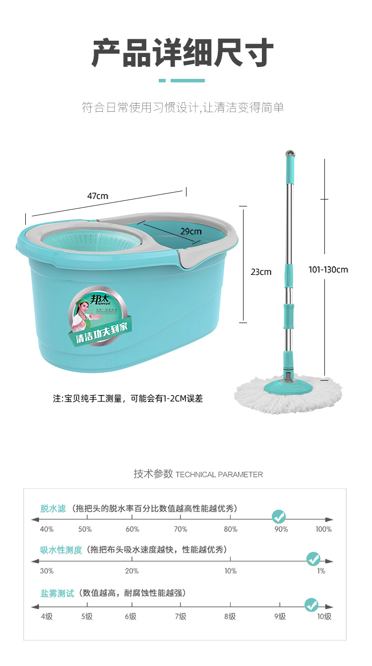 邦太旋转拖把家用甩干桶自拧水自动脱水拖把桶墩布通用一拖净