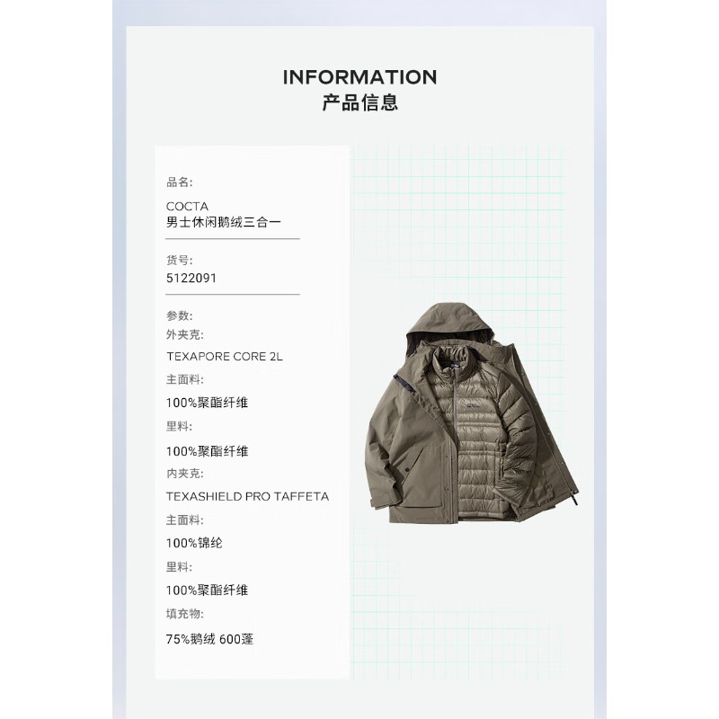 JackWolfskin秋冬新款COCTA男户外600蓬内胆三合一冲锋衣外套5122091