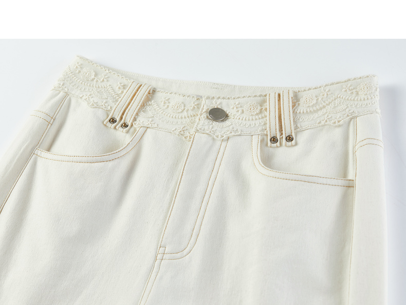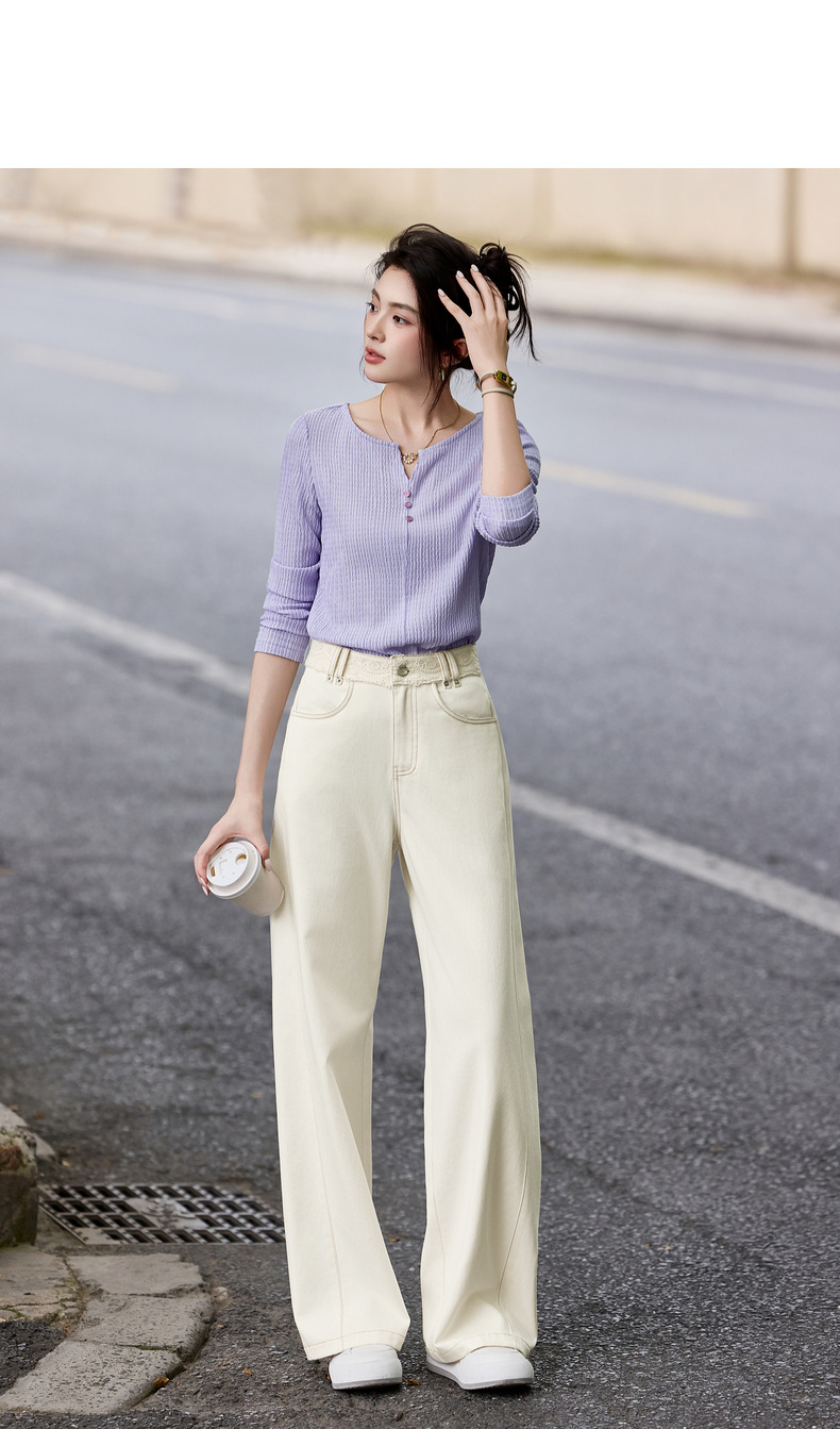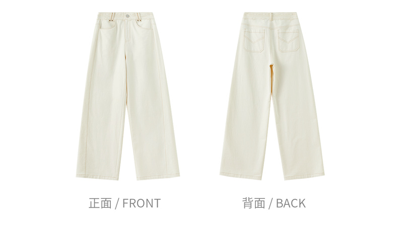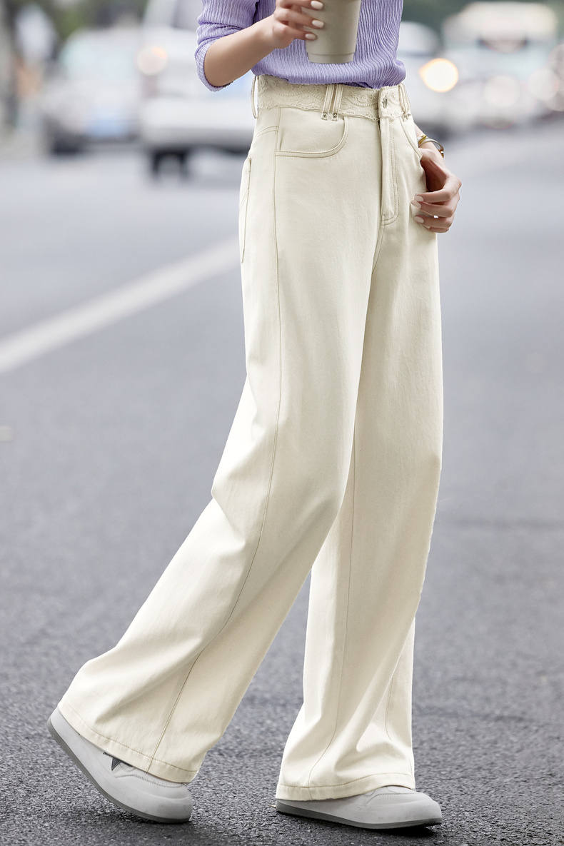 【内购】【蕾丝腰头】100%棉通勤梨型身材高腰撞色明线水洗牛仔直筒长裤-153K87950
