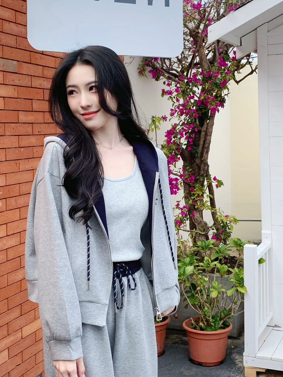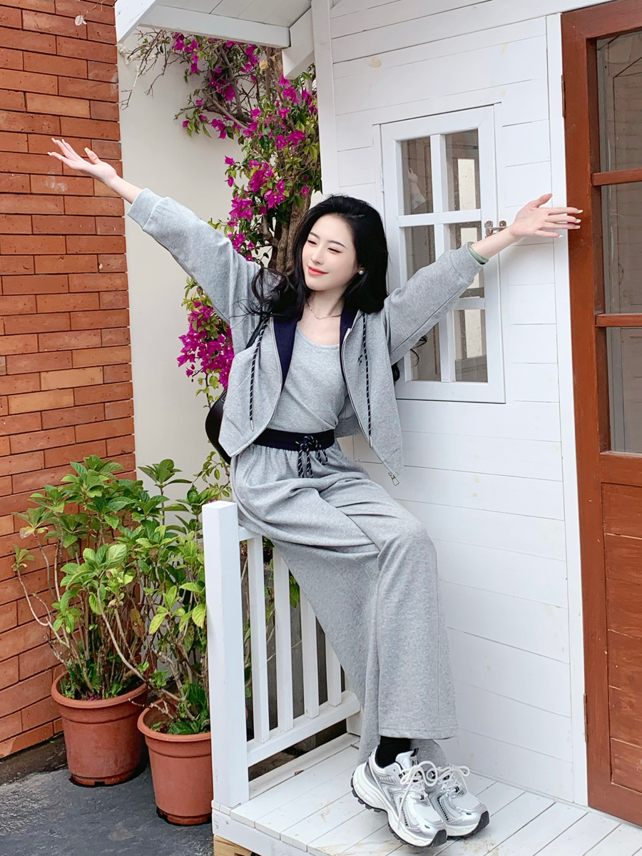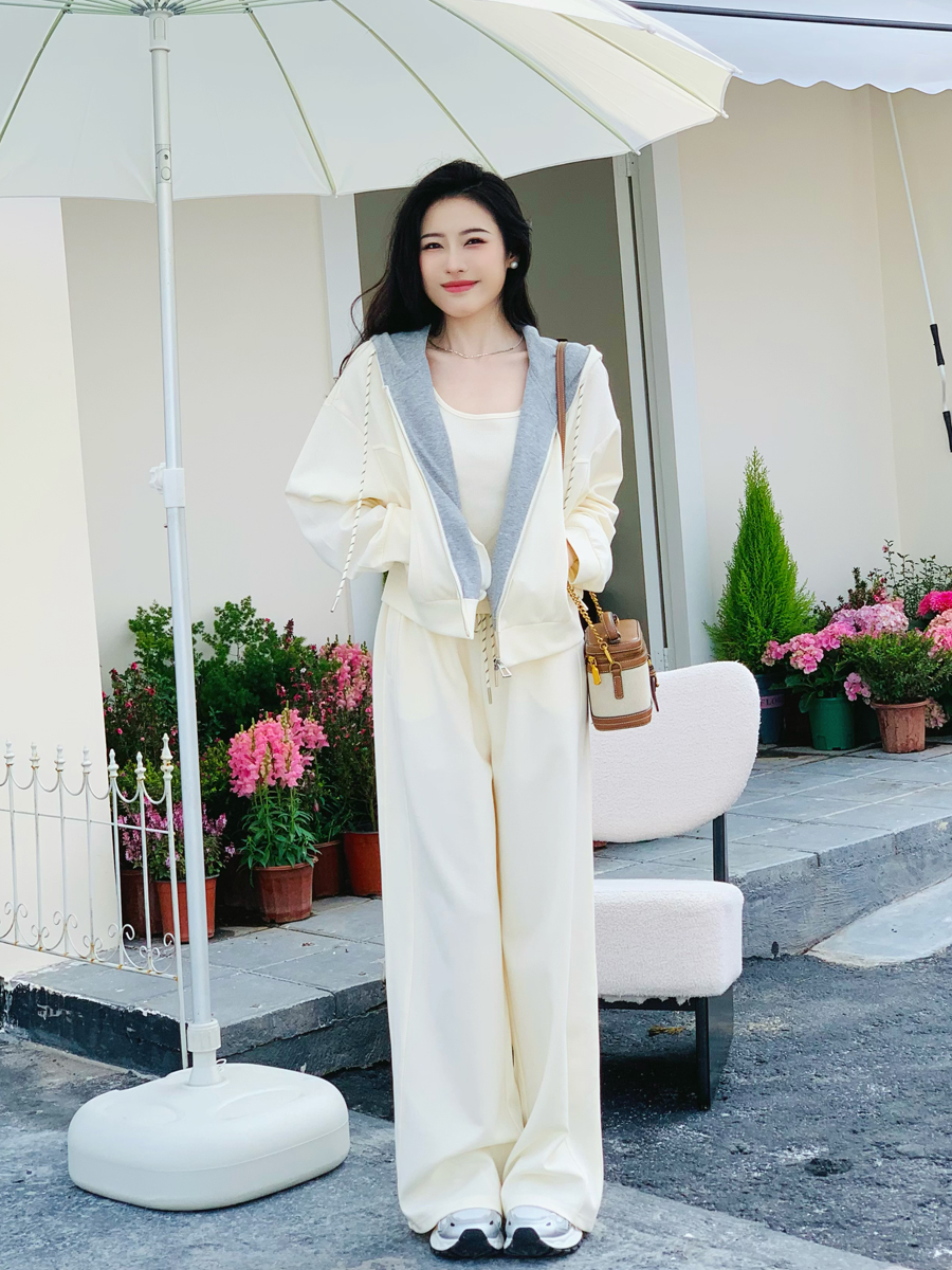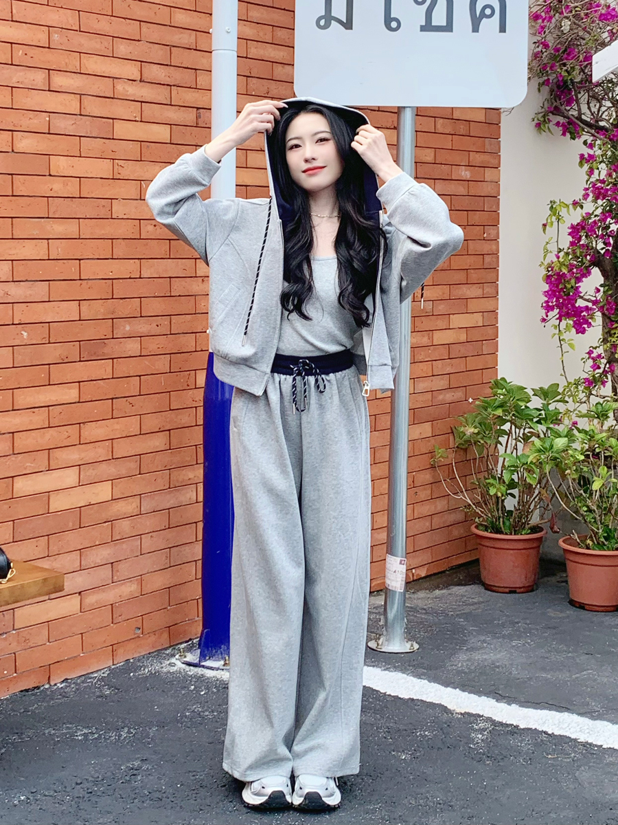 【百图lulu定制】【一套299元】【微风三件套】拼色 夹克 外套 休闲裤 吊带 外套 裤子三件套