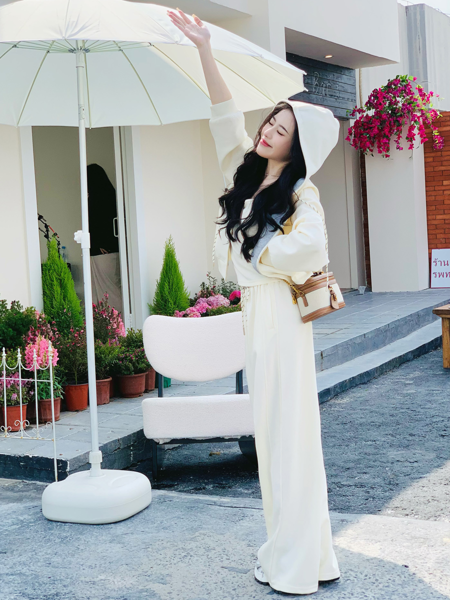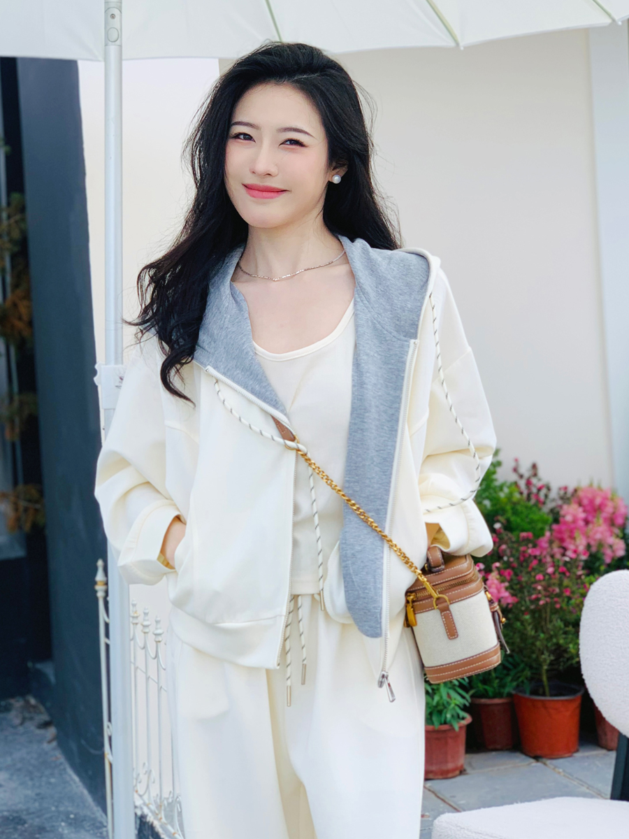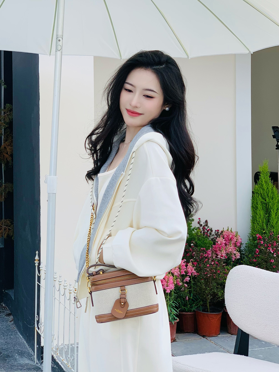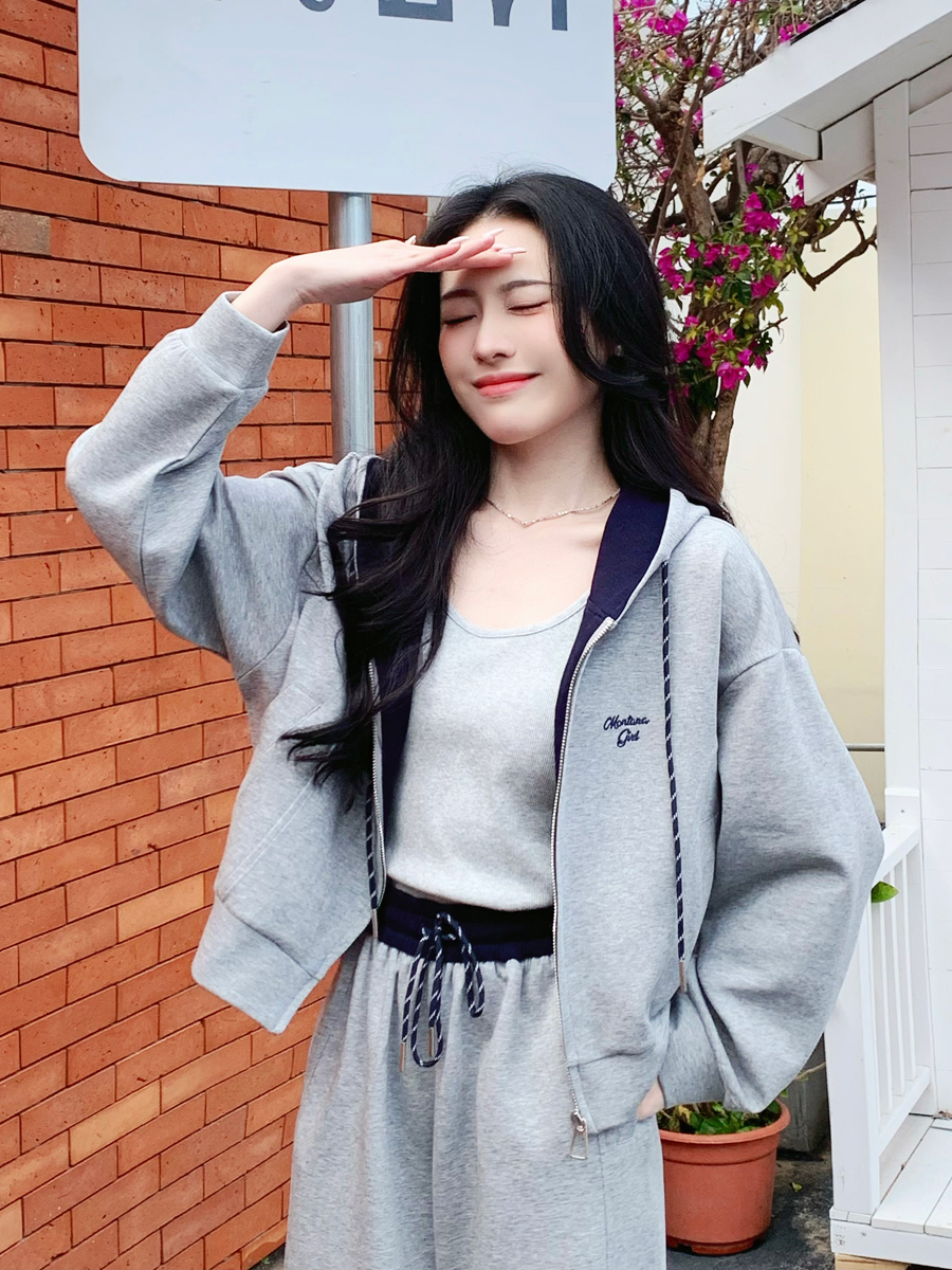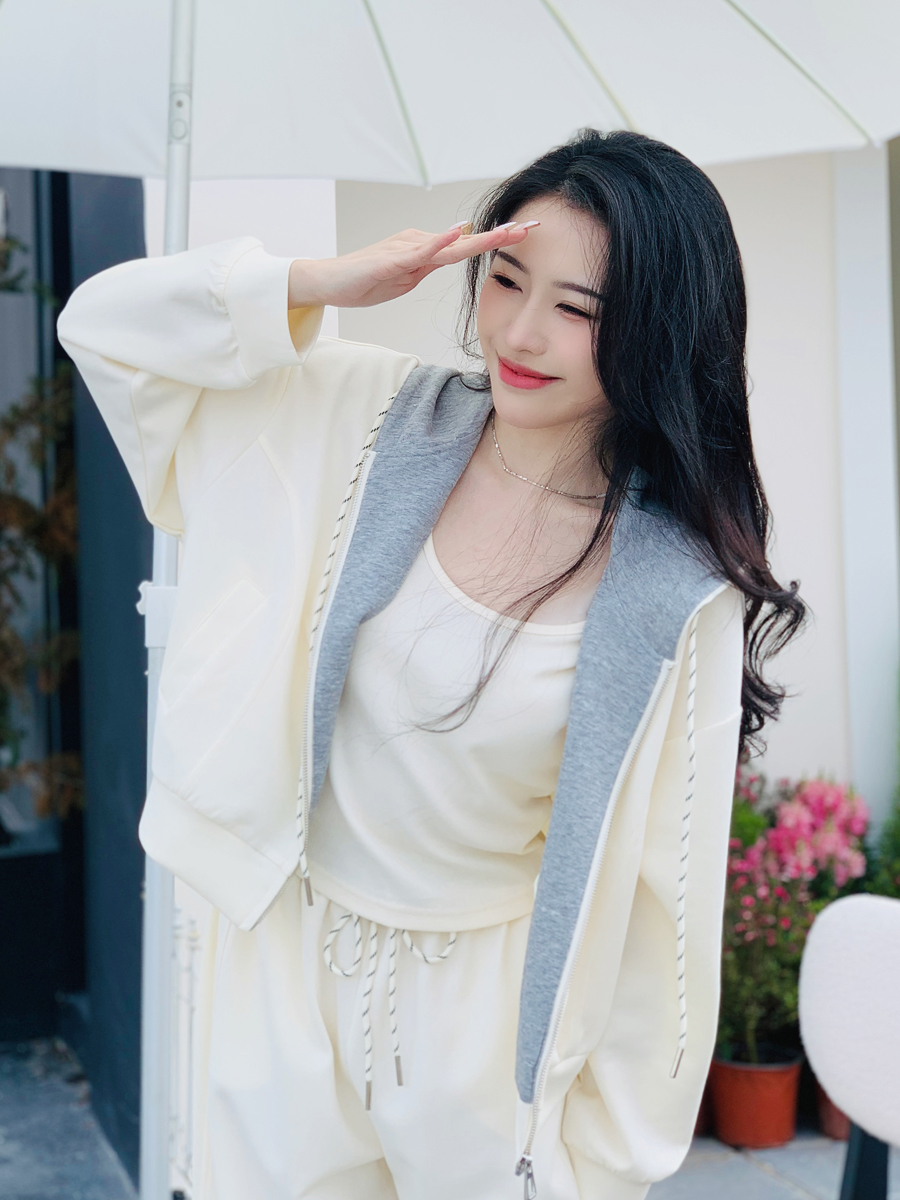 【百图lulu定制】【一套299元】【微风三件套】拼色 夹克 外套 休闲裤 吊带 外套 裤子三件套
