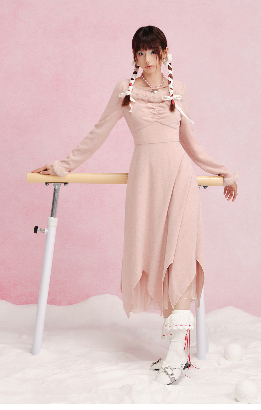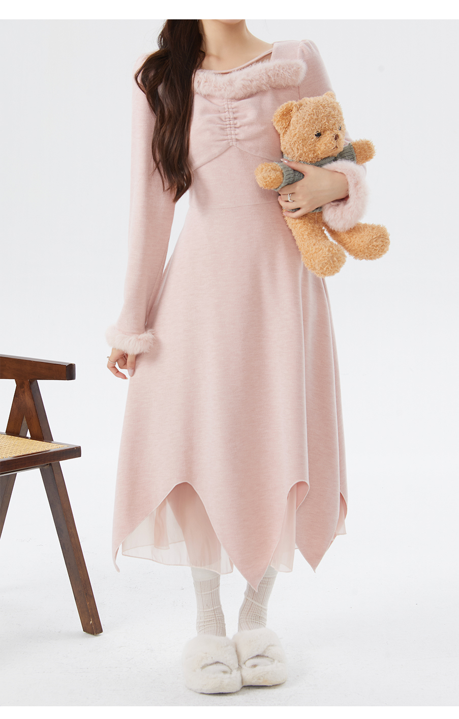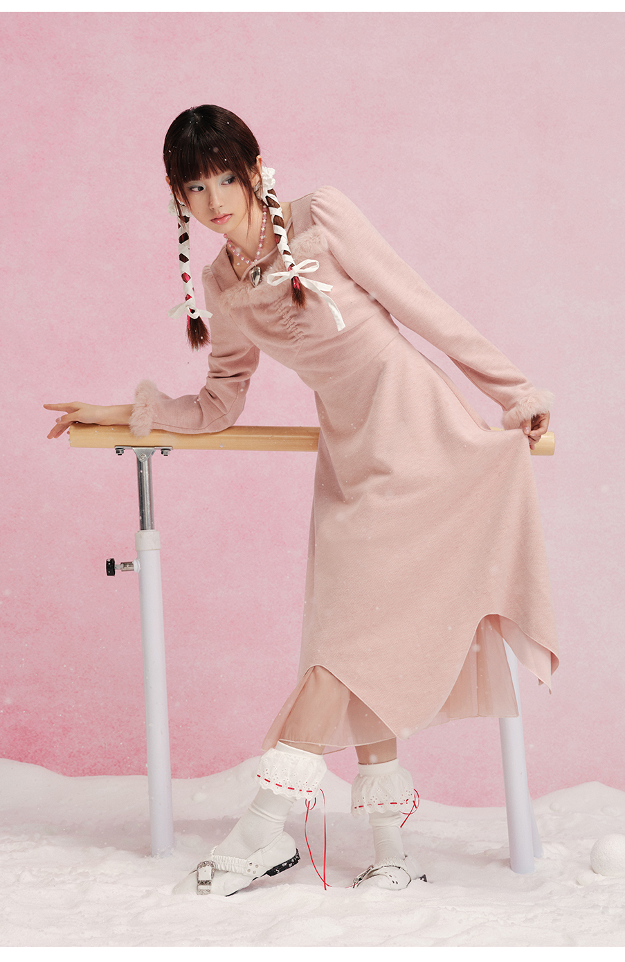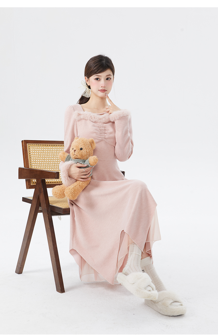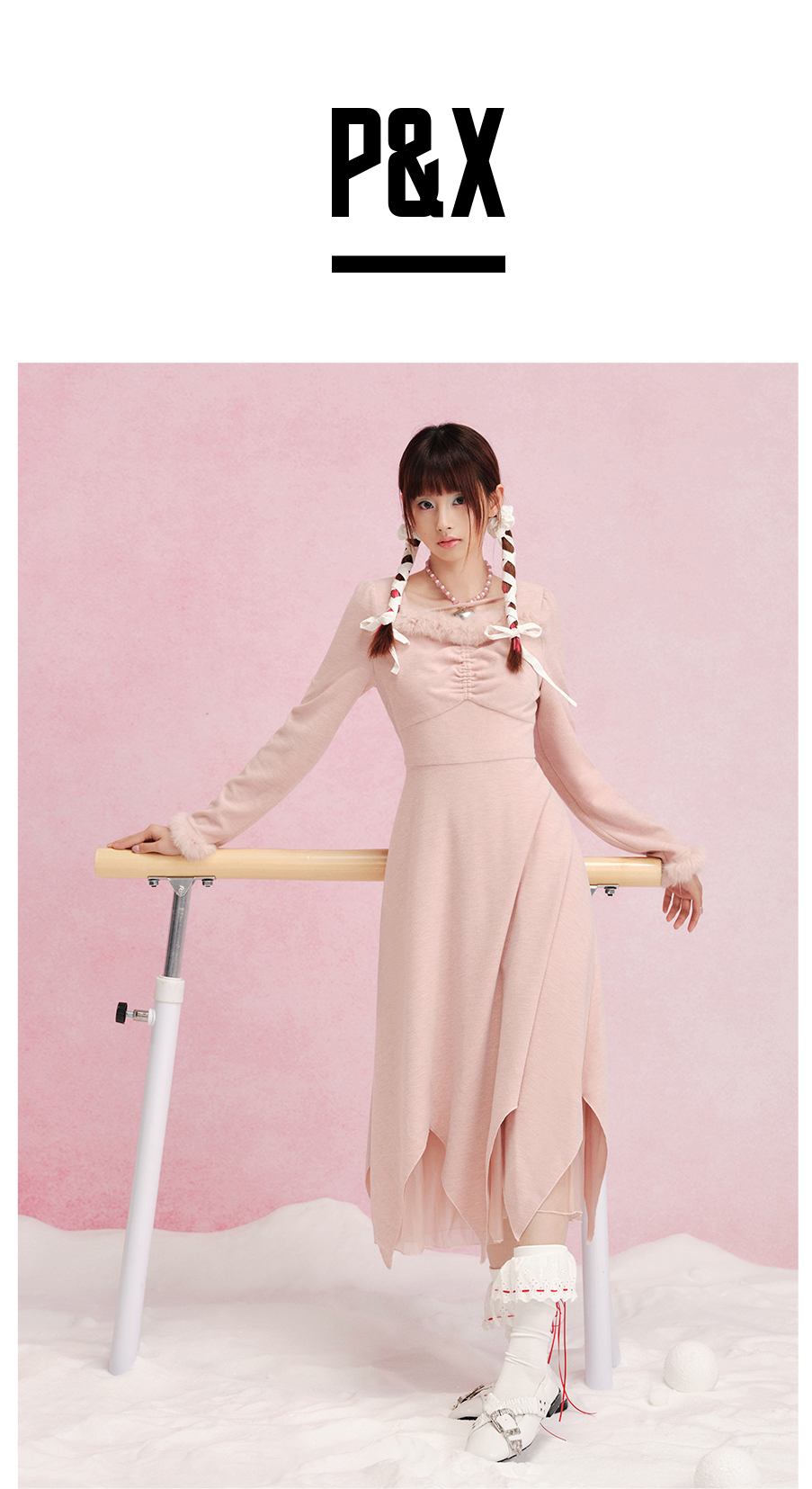P&X设计师女装冬季气质时尚显瘦针织连衣长裙 824408196 粉色