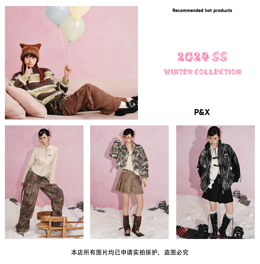 P&X设计师女装气质女神宽松短款毛衣824418170 杏色