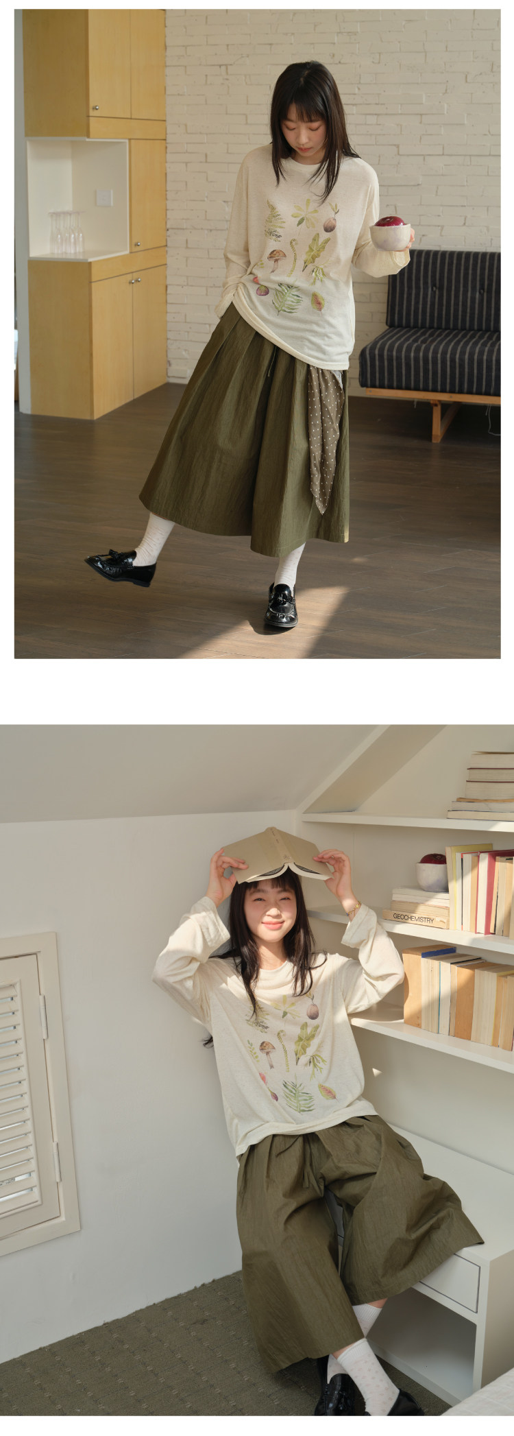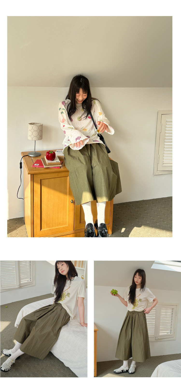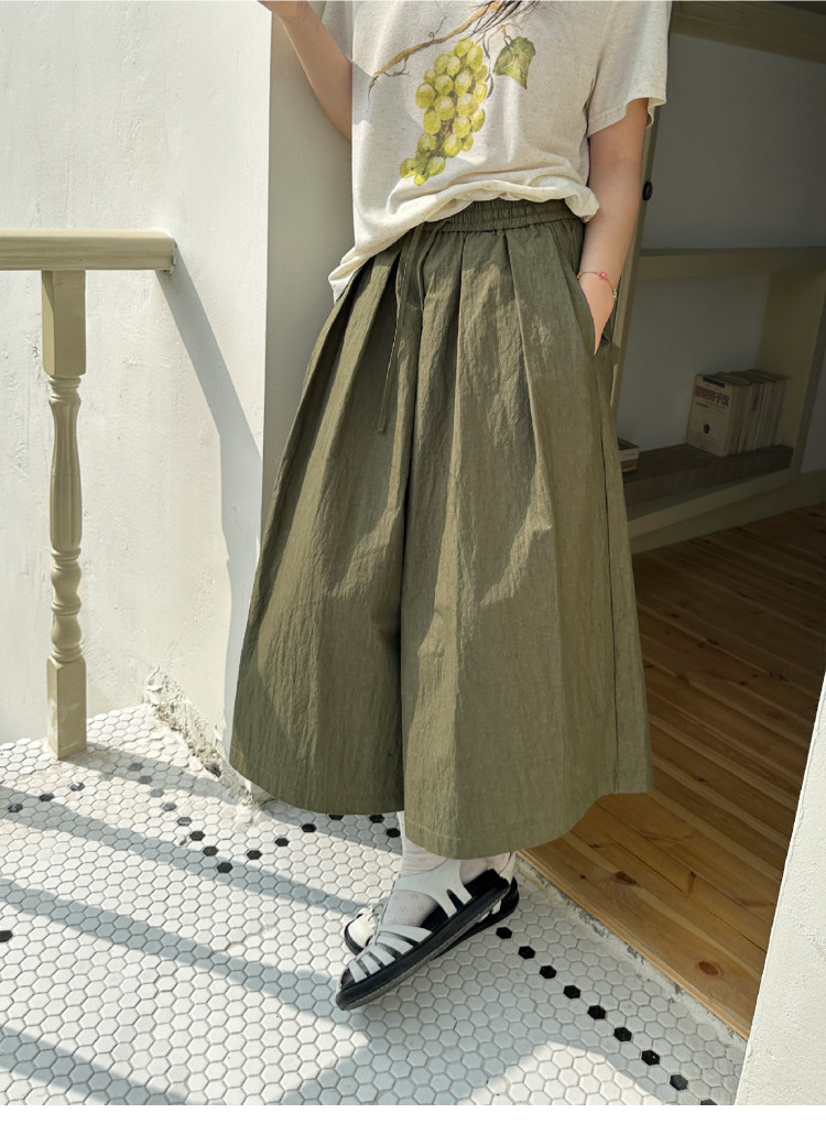 nothe Case布然/NC261835/「绿森林」量感褶裥八分裤裙