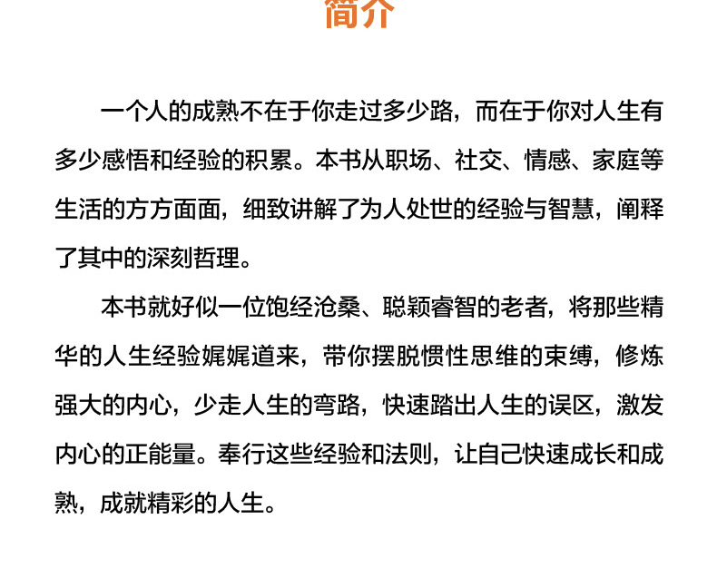 一个人的成熟不在于你走过多少路,而在于你对人生有多少感悟和经验的积累。《青春如此疼痛,你要勇敢前行》从职场、、情感、家庭等生活的方方面面,细致讲解了为人处世的经验与智慧,阐释了其中的深刻哲理。