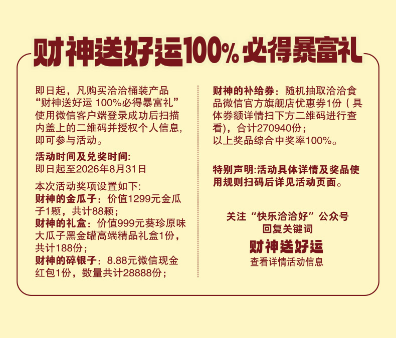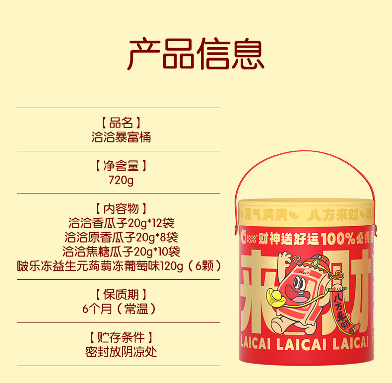 【年节好运礼 财运滚滚来】洽洽暴富桶720g(内含36包)洽洽年货甄选暴富桶★