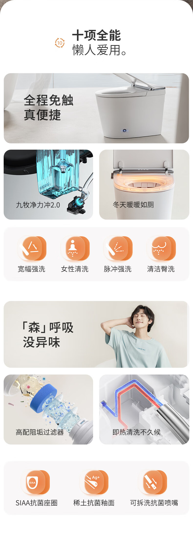 九牧(JOMOO)智能马桶一体机家用全自动翻盖泡沫盾无水压限制带水箱坐便器 零水压脚感翻盖【S700i】