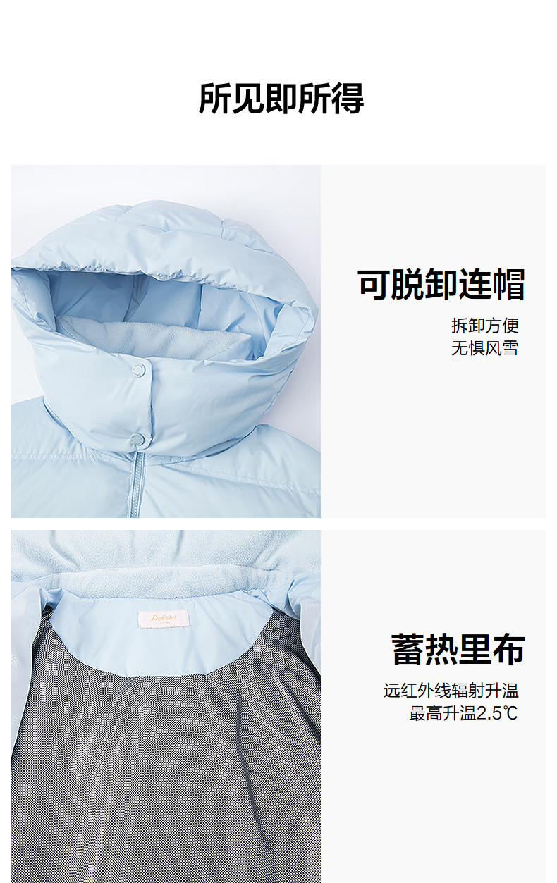 笛莎Deesha青少年女童羽绒服2025冬季女童云感可脱卸连帽羽绒服