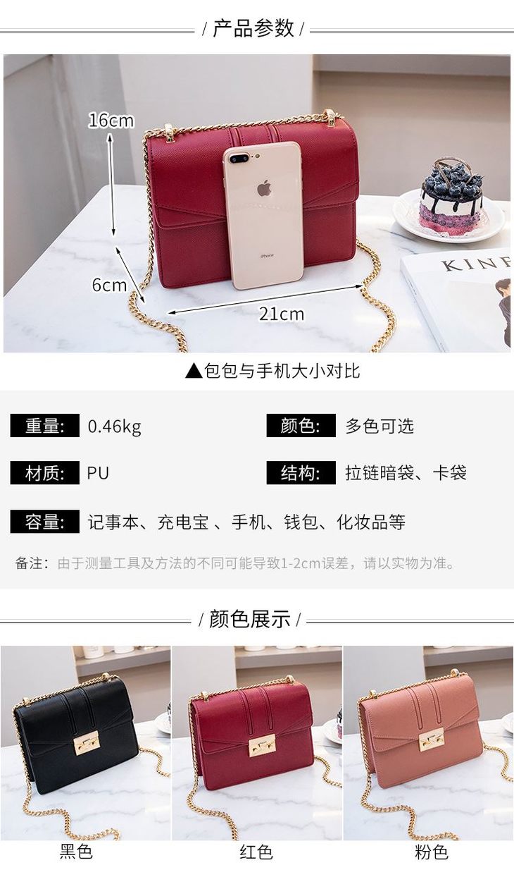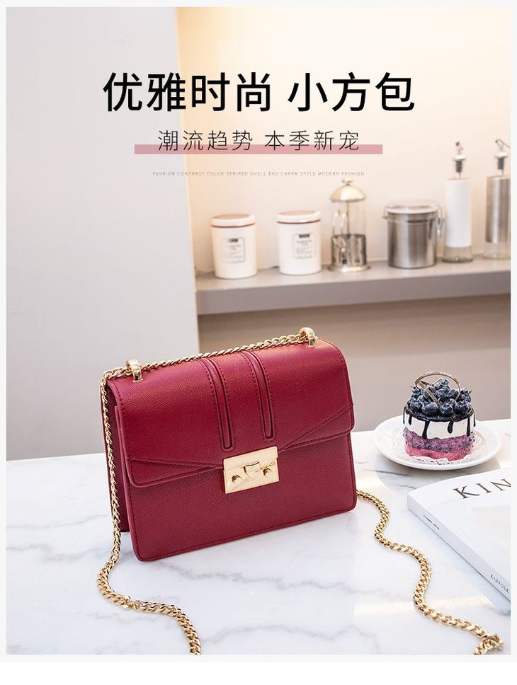 【授权产品】Charles&Keith包包女2018秋冬新款小ck-0639网红酒神小方包链条女包