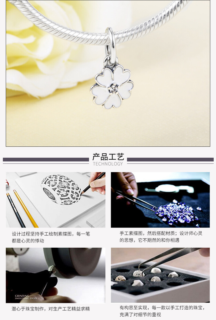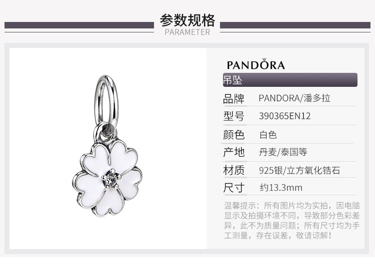 PANDORA/潘多拉 女士 925银 珐琅樱花草吊坠 390365EN12