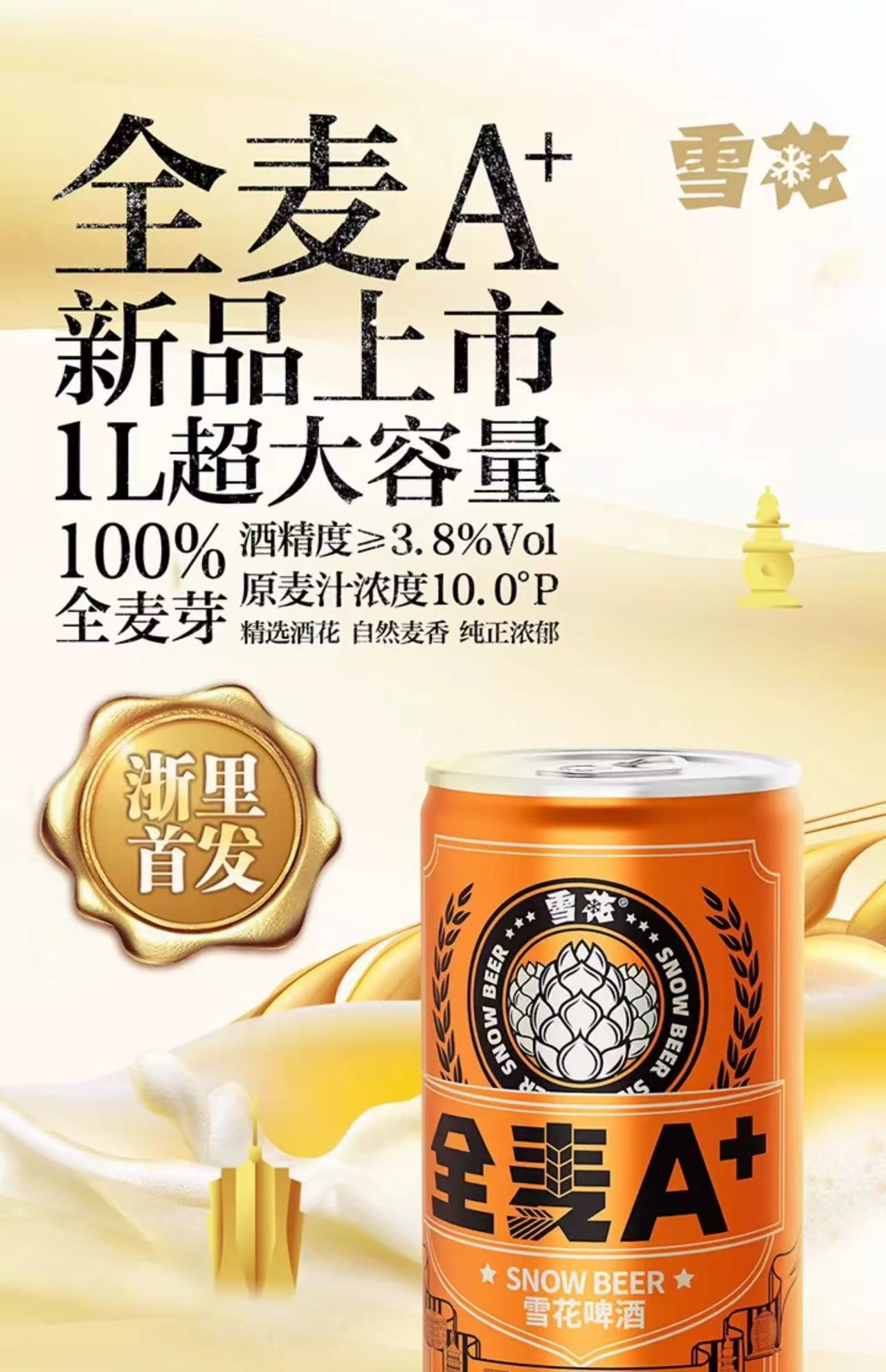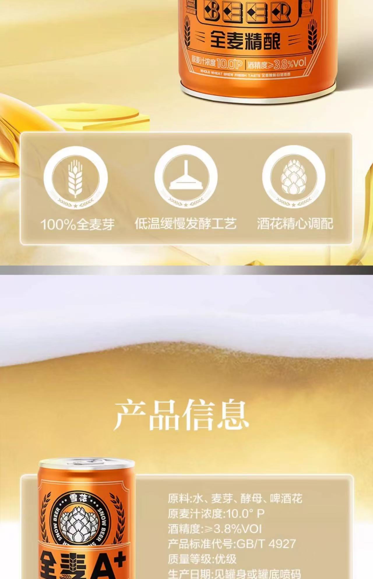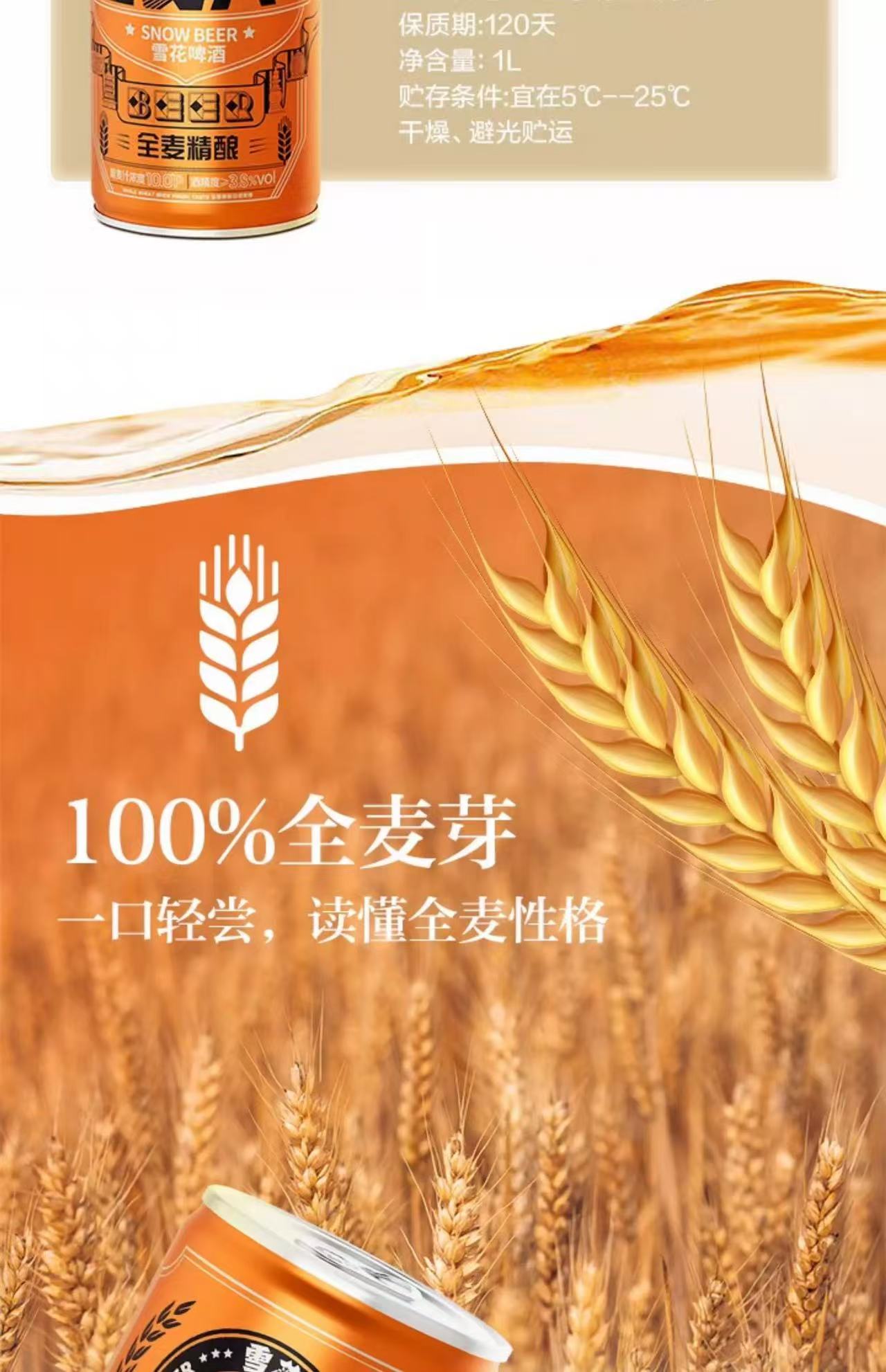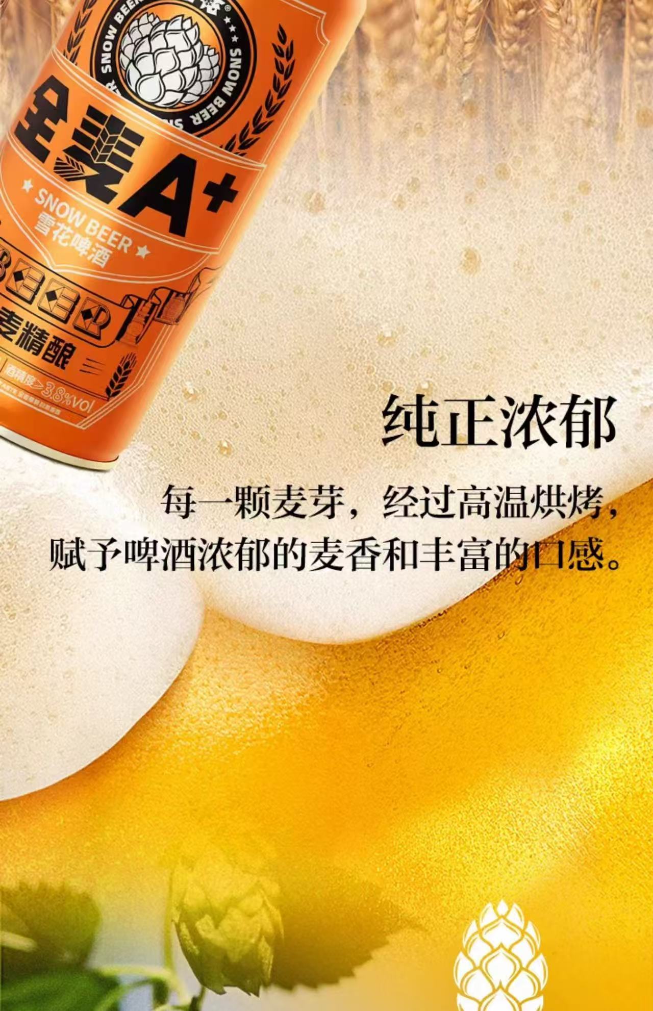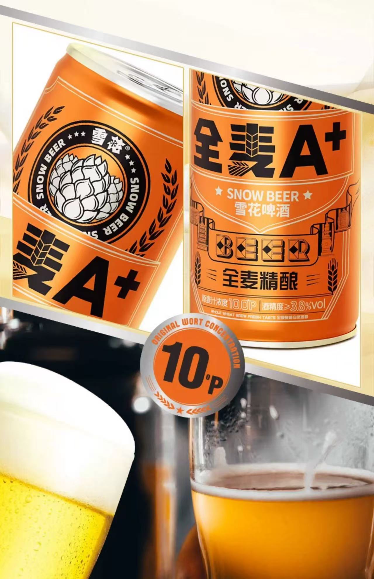 雪花全麦A+精酿啤酒 酒精度:3.8° 麦芽度:10°