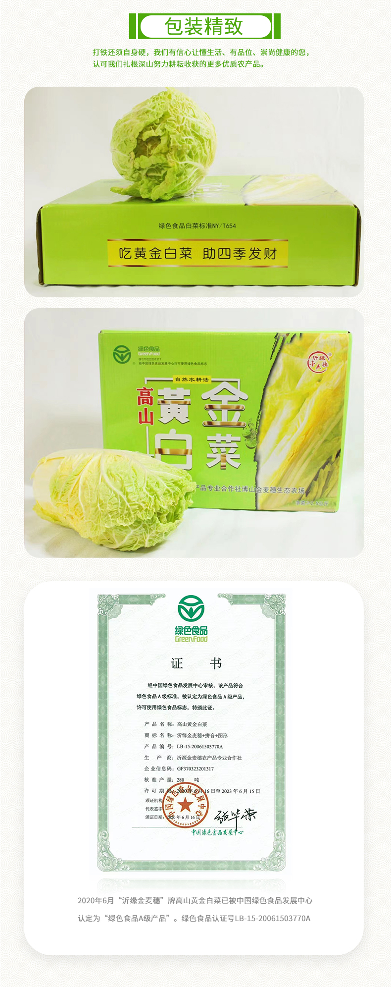 【品名/规格】高山有机黄金白菜(5斤装/2-3颗)
