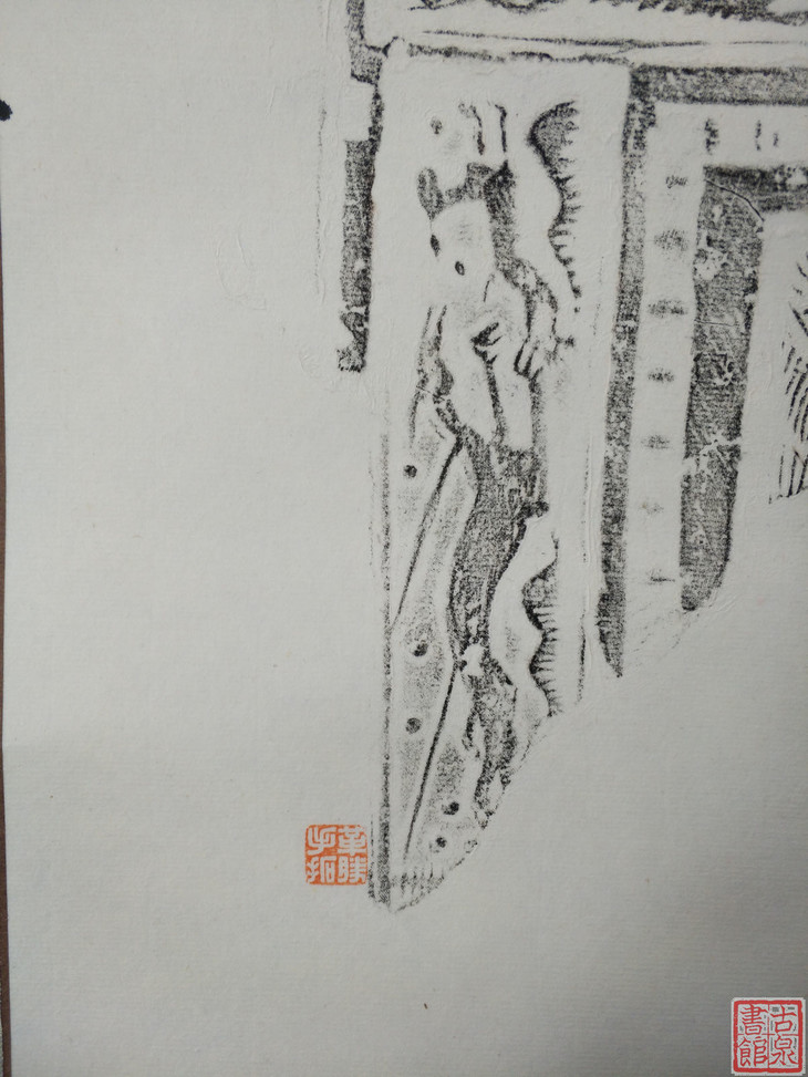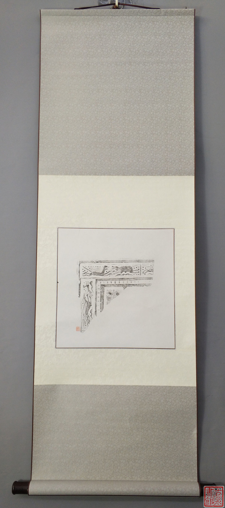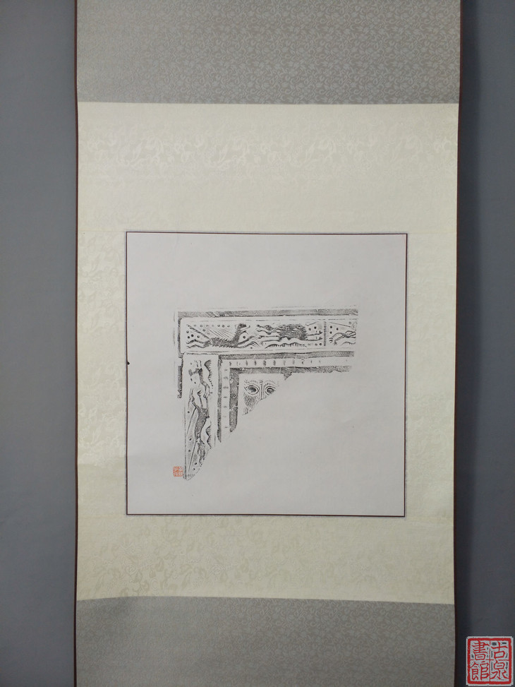 古泉书馆文创【汉砖墨拓龙纹兽面】原拓挂轴