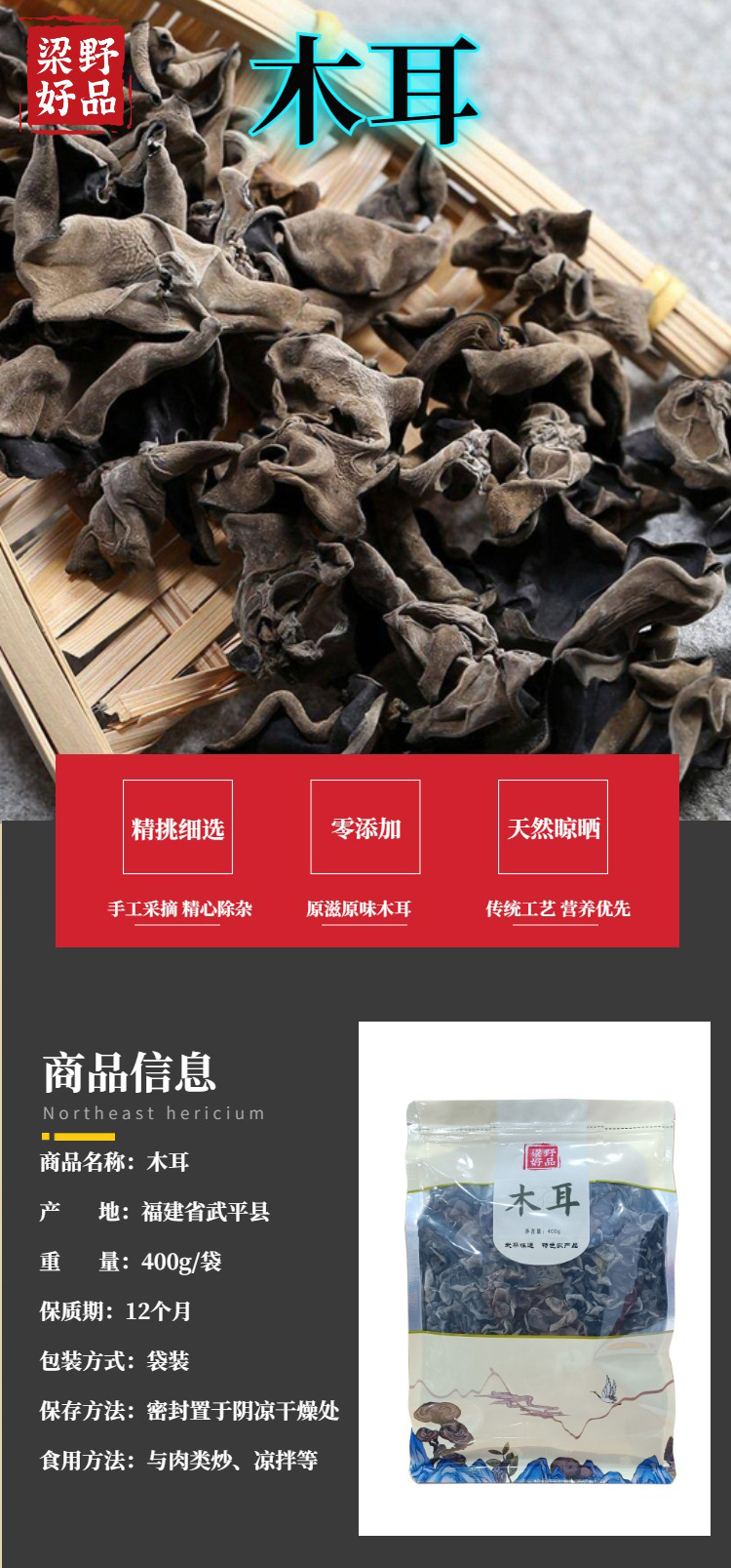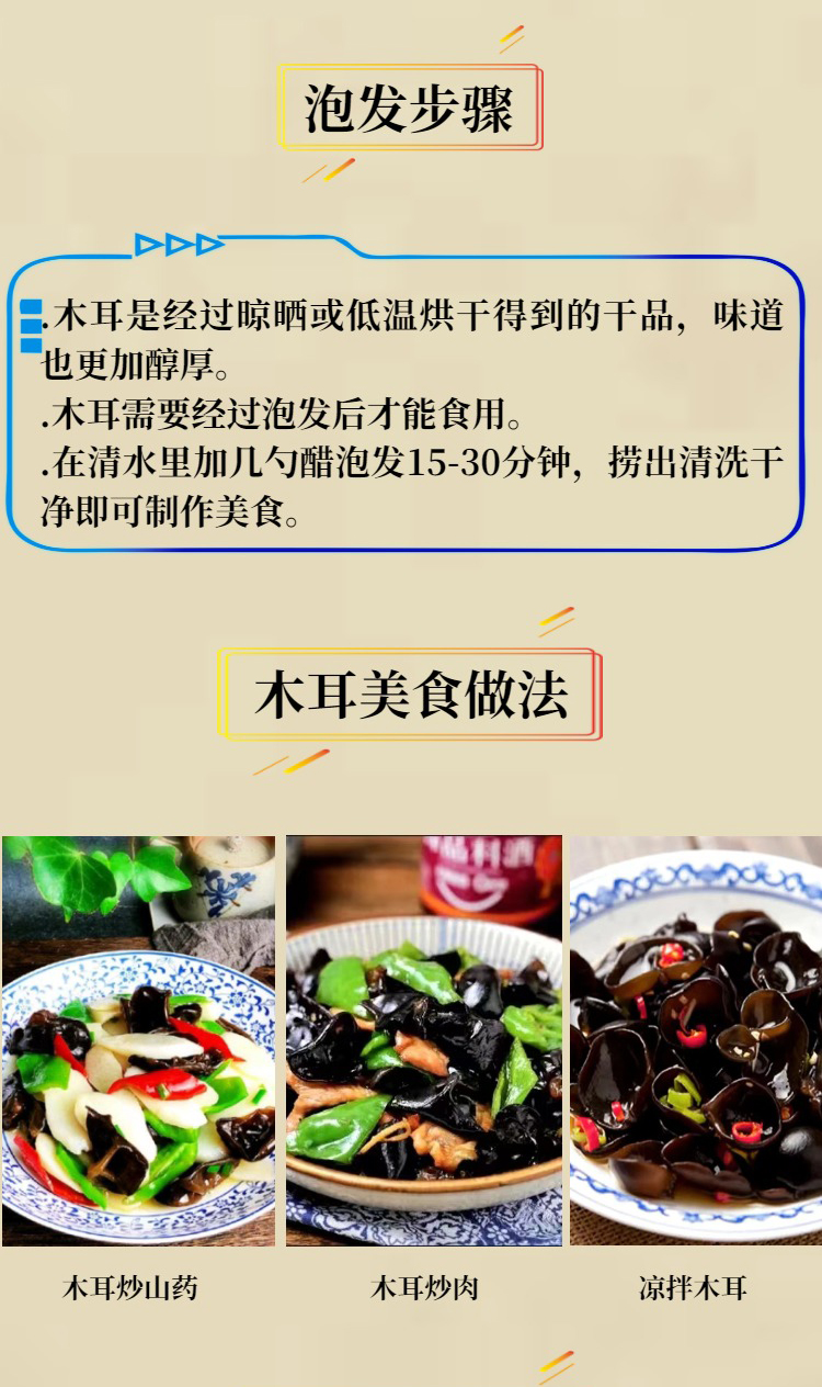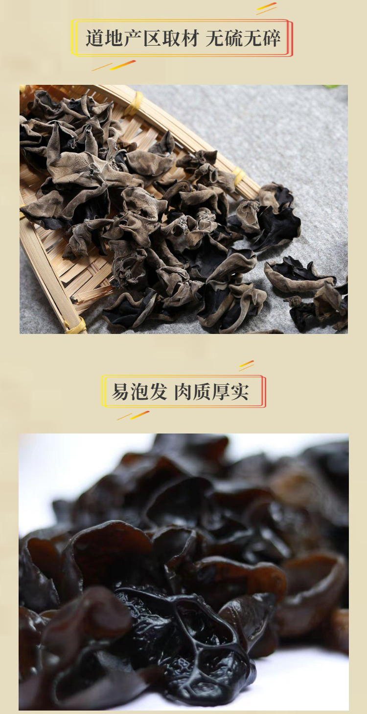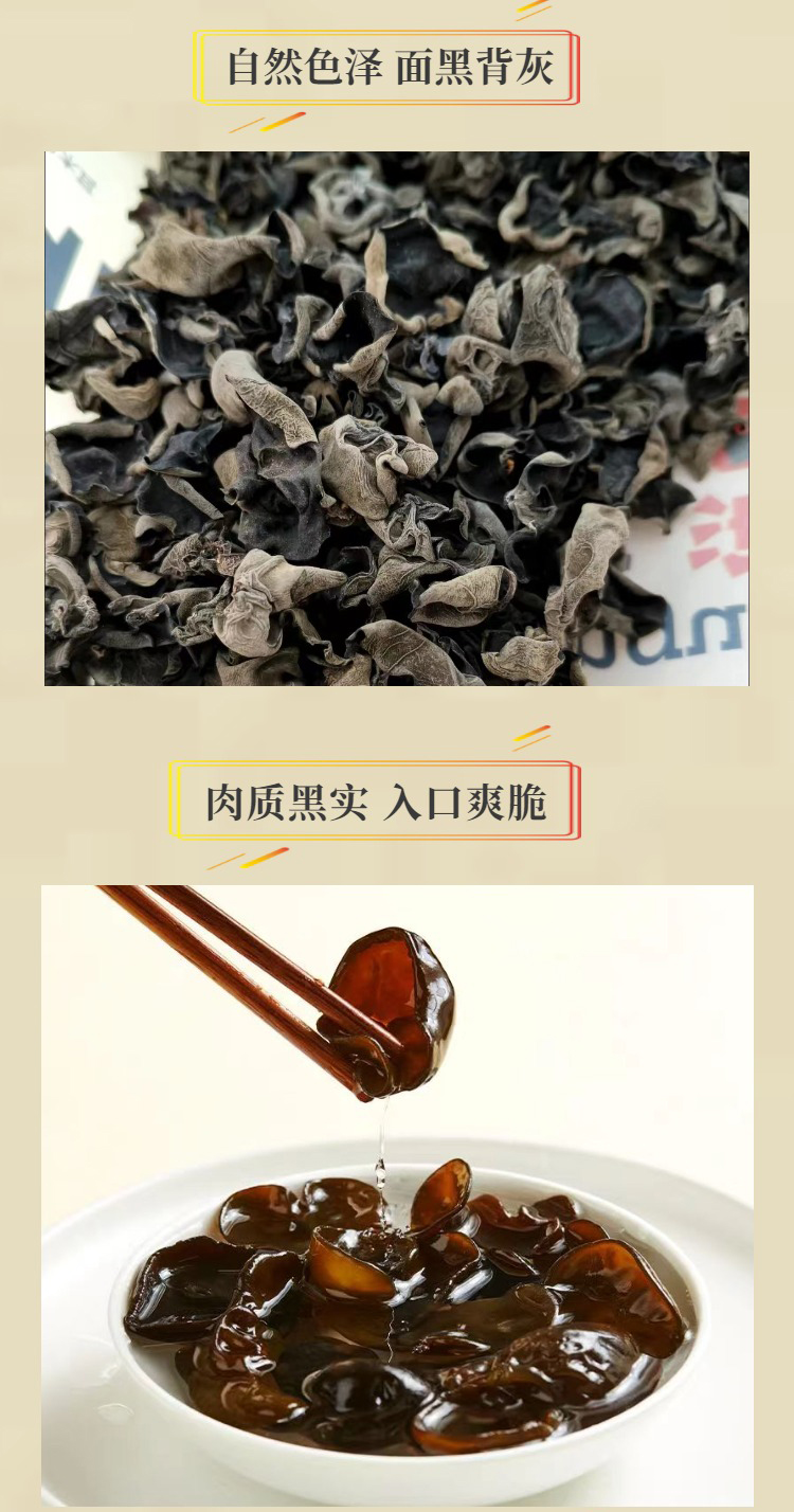 黑木耳干品中蛋白质、维生素和铁的含量很高,其蛋白质中含有多种氨基酸,尤以赖氨酸和亮氨酸的含量最为丰富。