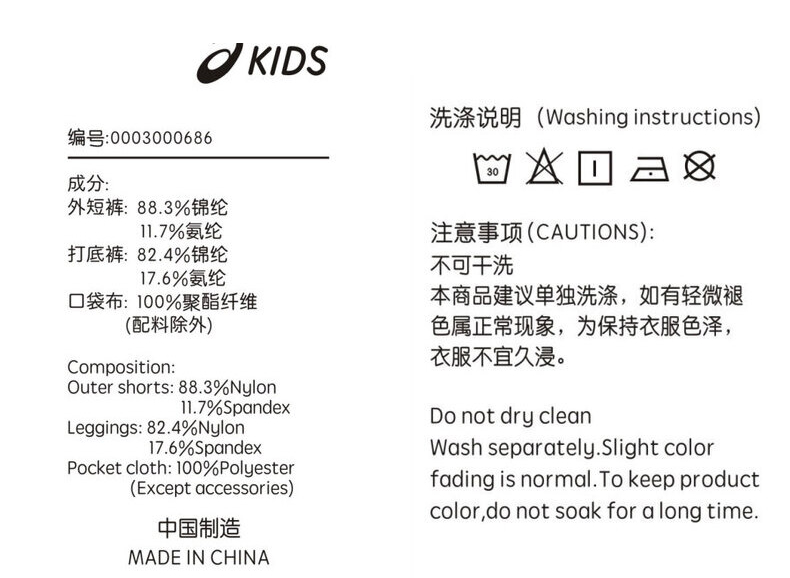 ASICS/亚瑟士童装2024年夏季新款运动裤男童假两件裤子