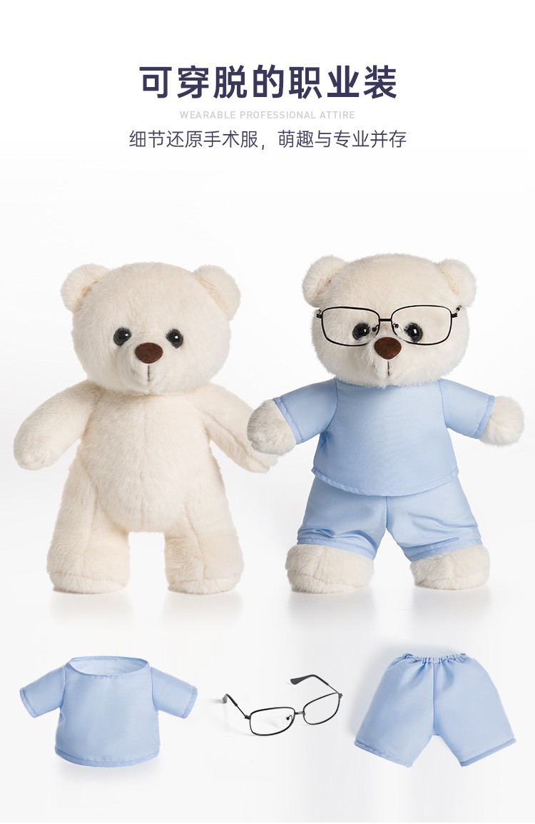 【实付满199送钥匙扣】【医生手术服小熊】可定制创意毛绒小熊公仔儿童玩具服装可脱玩偶送礼礼物