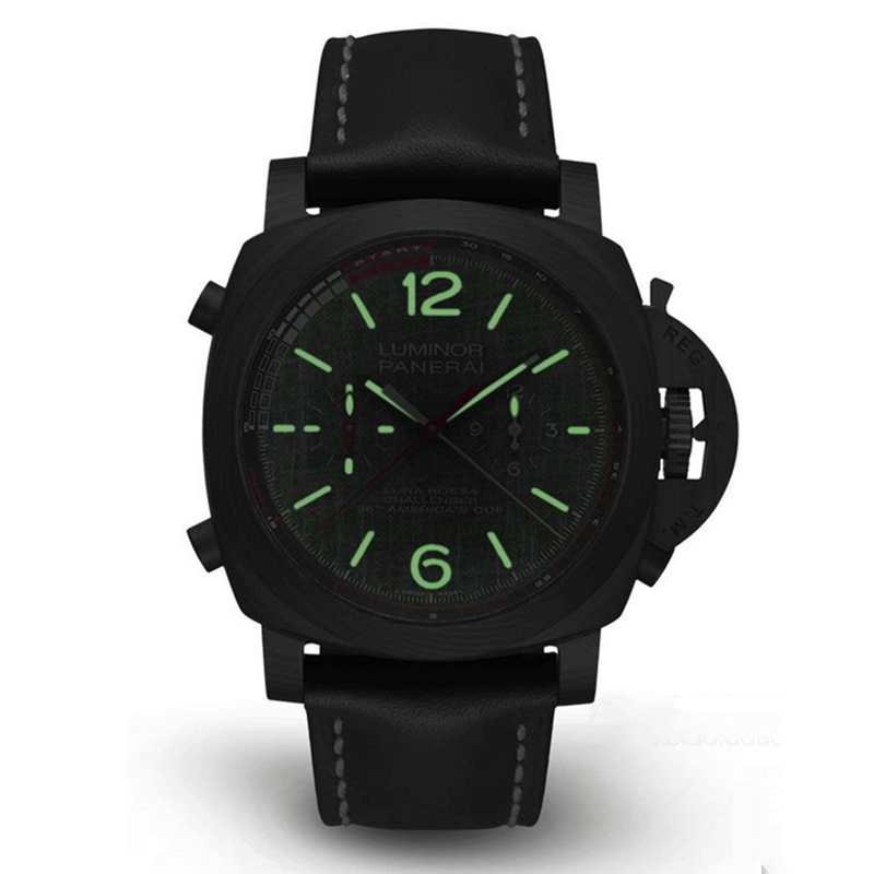镜面材质 | 以钢玉制成 蓝宝石水晶玻璃表镜 | 表盘 | Carbotech碳纤维复合物料表壳 深灰色表盘,三明治式结构,表面包覆船帆材质,阿拉伯数字及小时标示以白色Super-LumiNova®夜光涂层涂覆,绿色夜光显示;镌刻特别制订的「Luna Rossa Challenger 36th America’s Cup」字样;3点钟位置设小时计时盘,9点钟位置设小秒盘,表盘中央设计时秒针及分针,表盘外缘印有以节为单位的刻度 旋入式表冠,黑色镀层钛金属。镌刻Luna Rossa标志、Luna Rossa AC75单体帆船及美洲杯图案 |