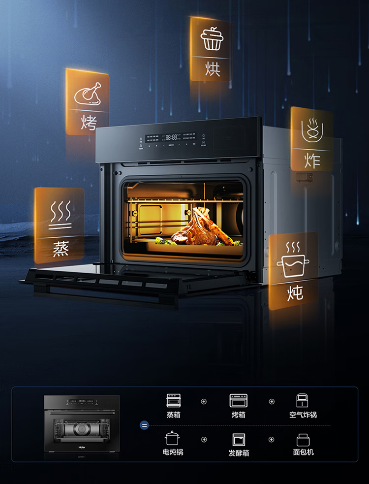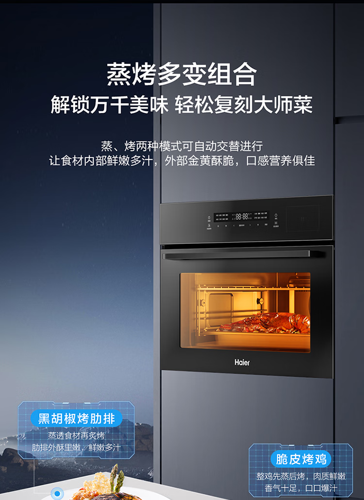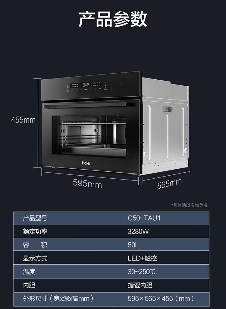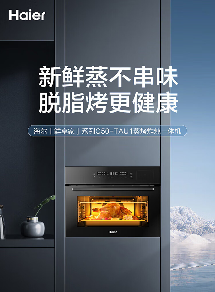 海尔(Haier)嵌入式蒸烤箱 蒸烤一体机 50L蒸烤烘炸炖五合一 温湿精控 余水单独回收 搪瓷内胆自清洁C50-TAU1