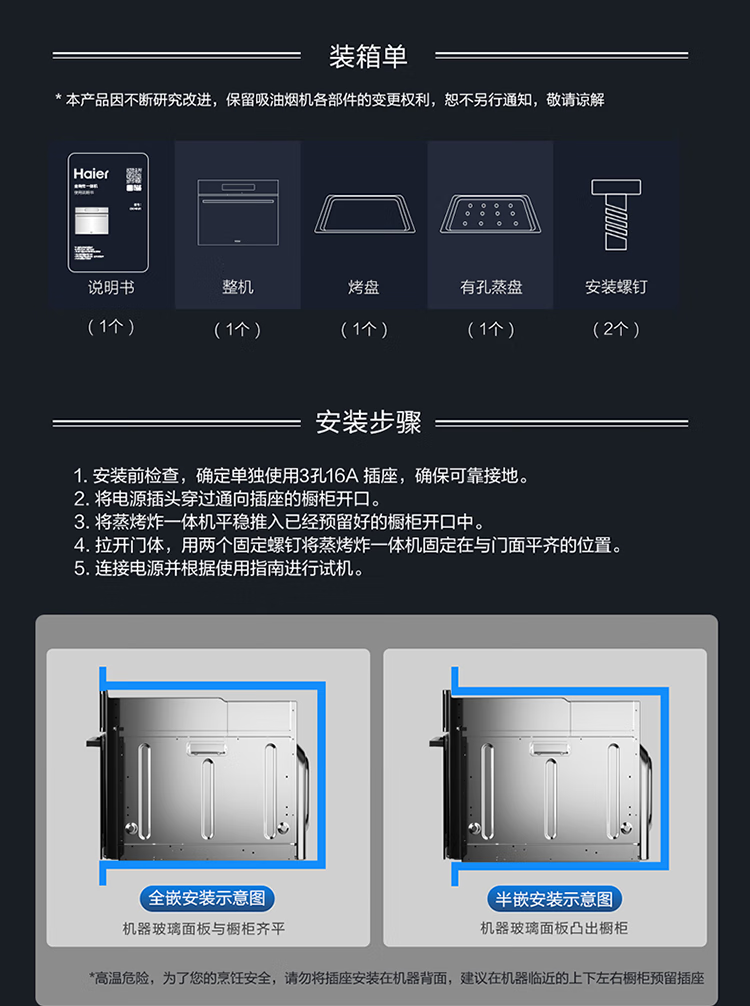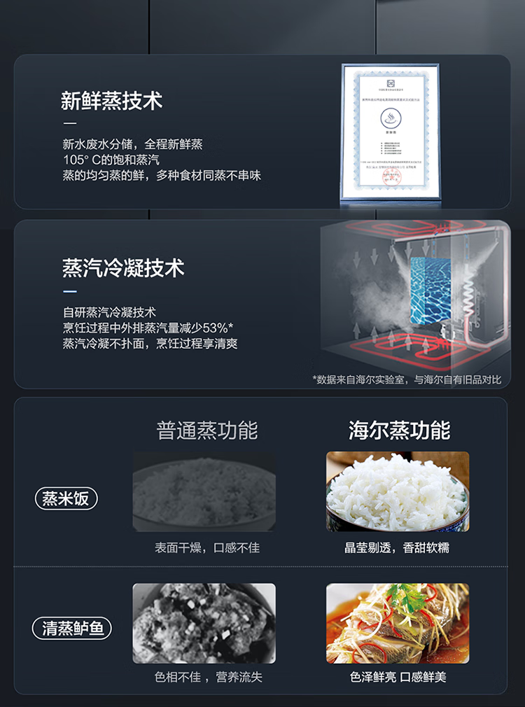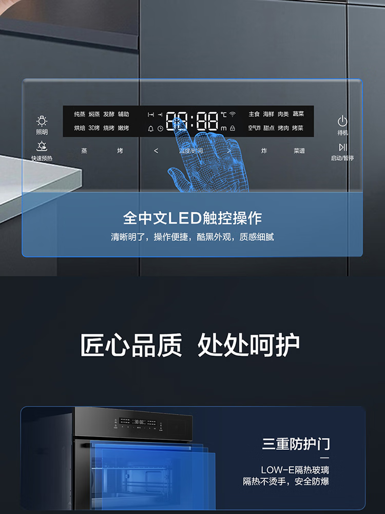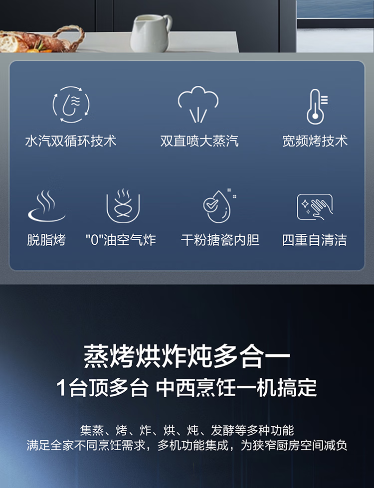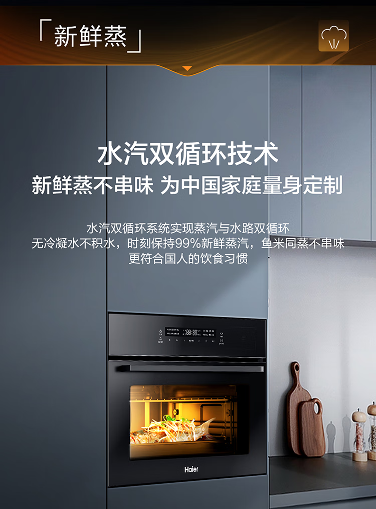 海尔(Haier)嵌入式蒸烤箱 蒸烤一体机 50L蒸烤烘炸炖五合一 温湿精控 余水单独回收 搪瓷内胆自清洁C50-TAU1