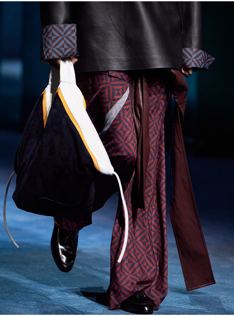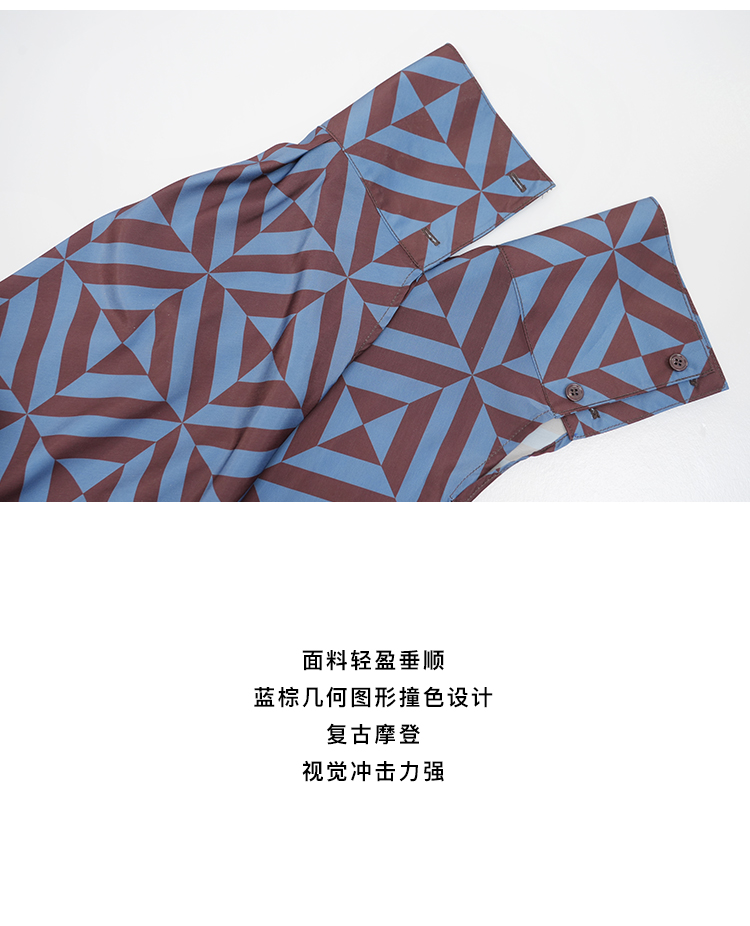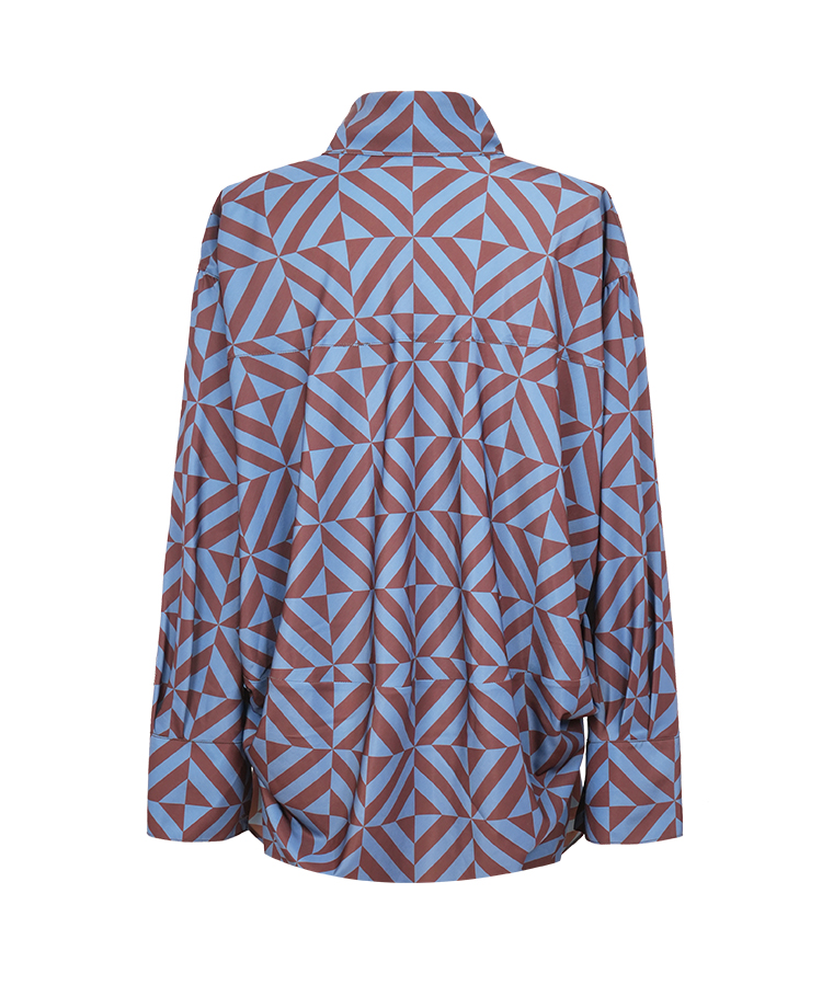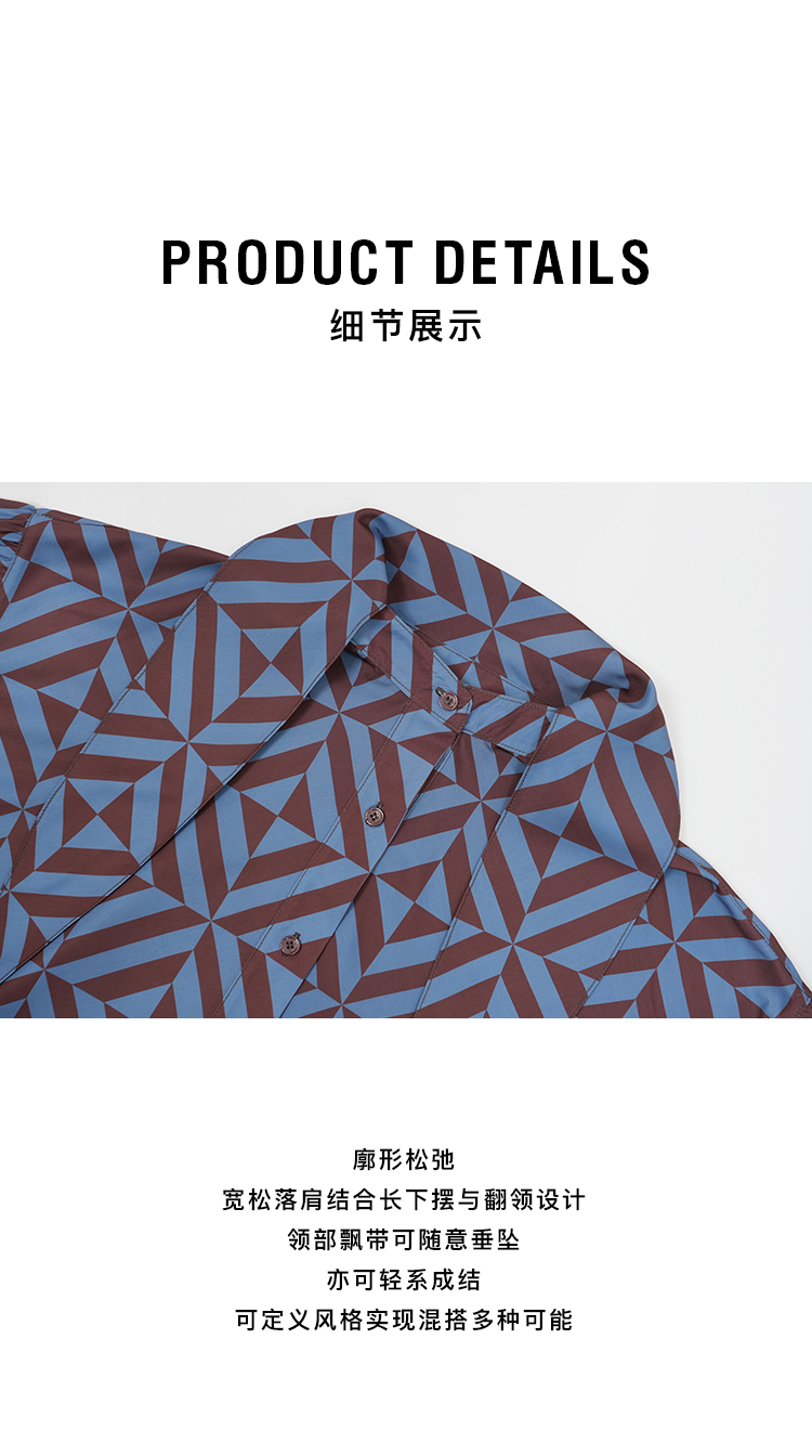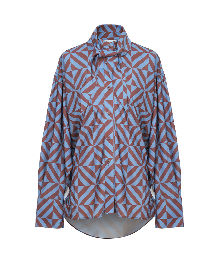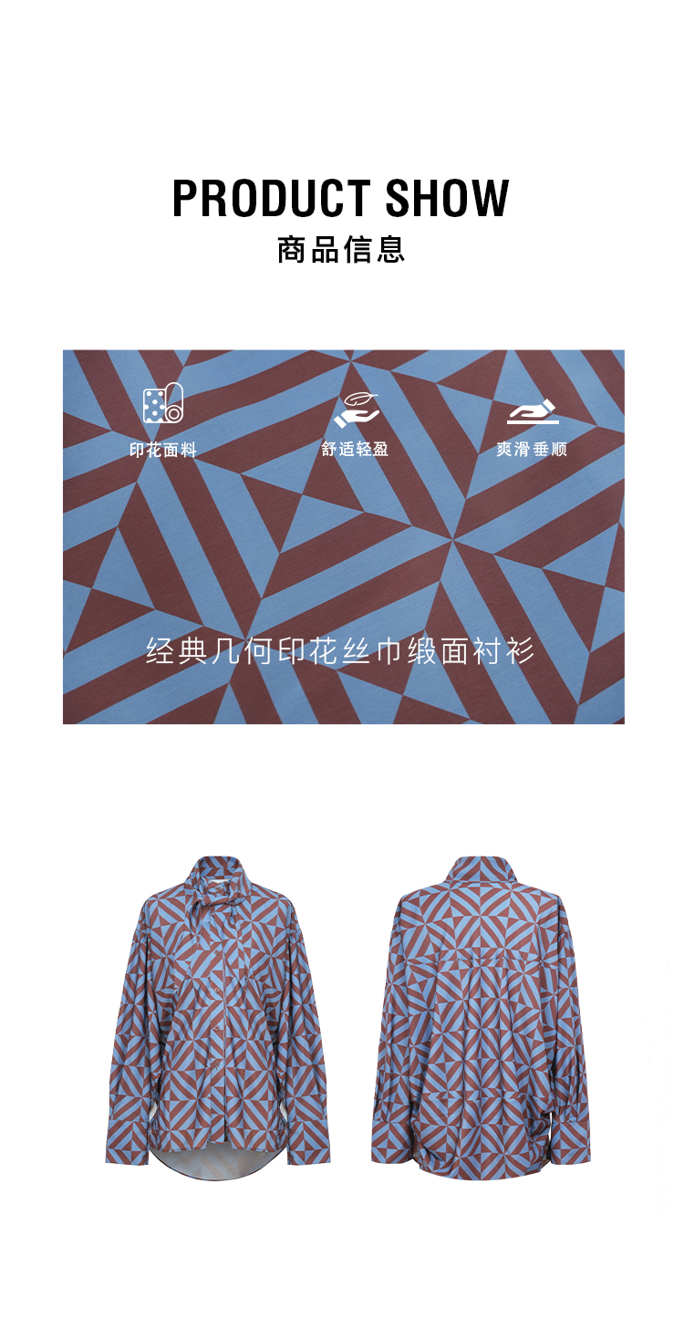 HIDEMI 经典几何印花丝巾绑带式大廓形极简宽松缎面衬衫