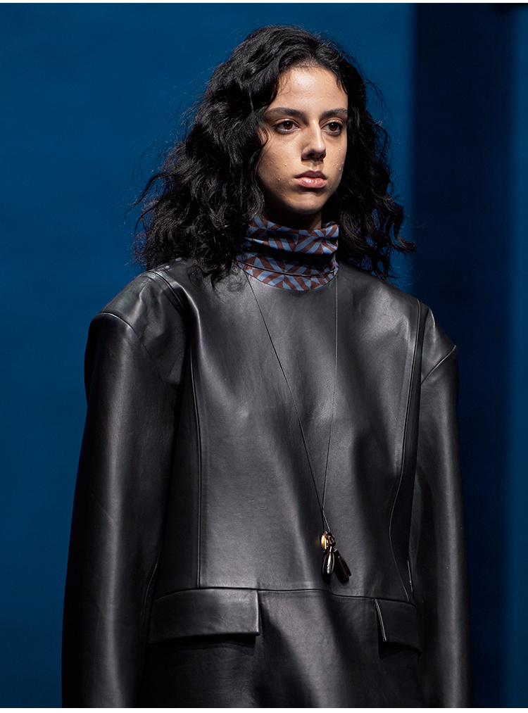 HIDEMI本期必入拉链褶皱廓形衬衫 黑色/白色