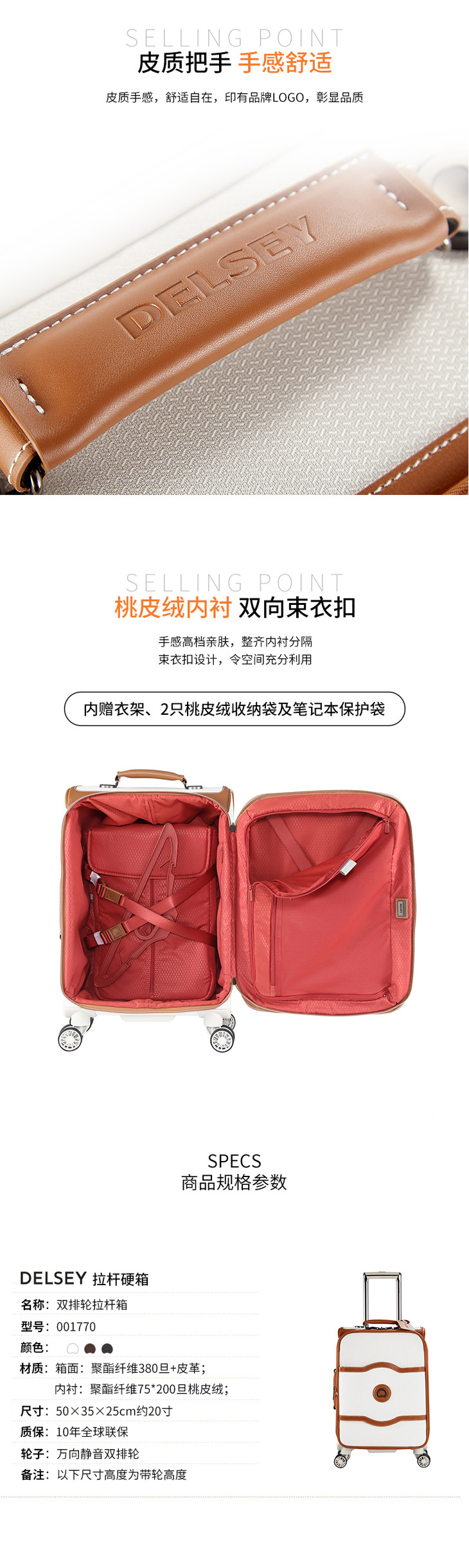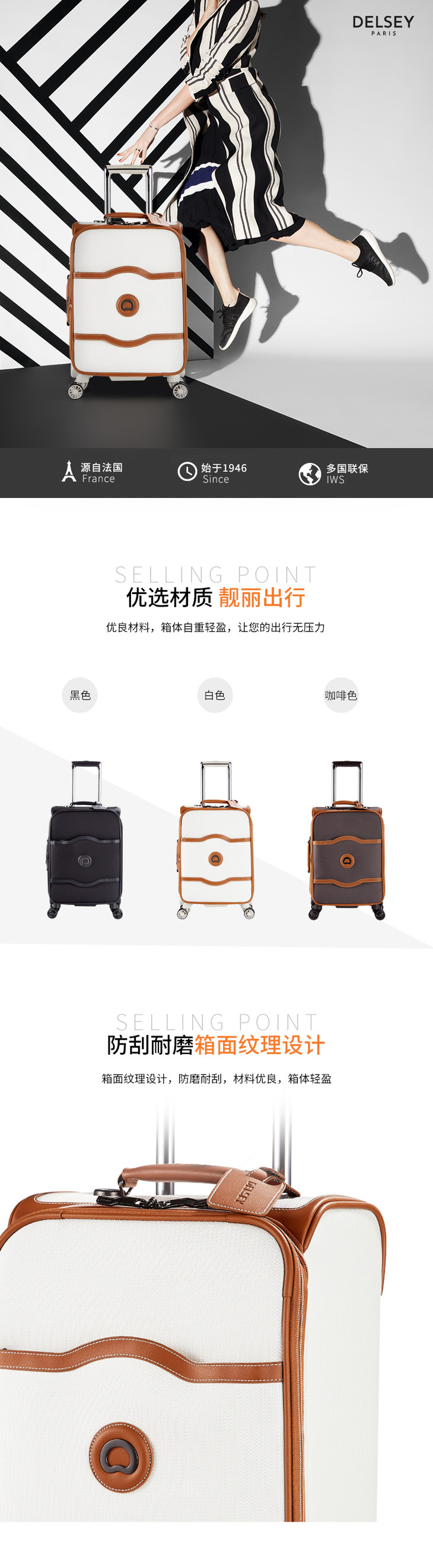 DELSEY法国大使 拉杆箱登机箱 密码软箱香提兰系列 白色/棕色/黑色 可选