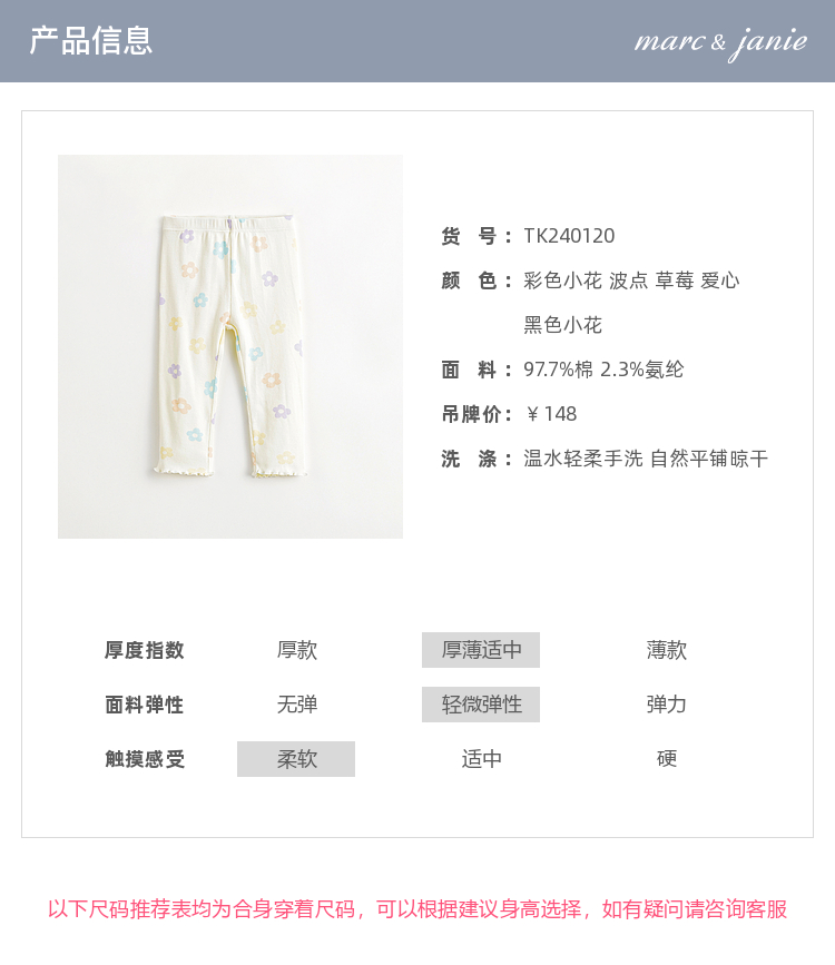马克珍妮女童无感印花弹力打底裤宝宝裤子2024年春装新款240120