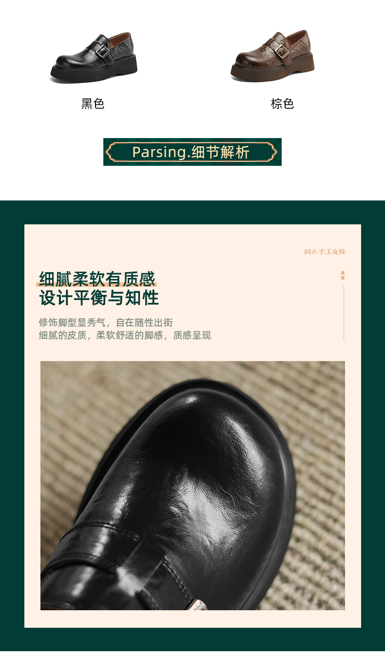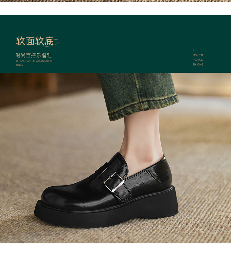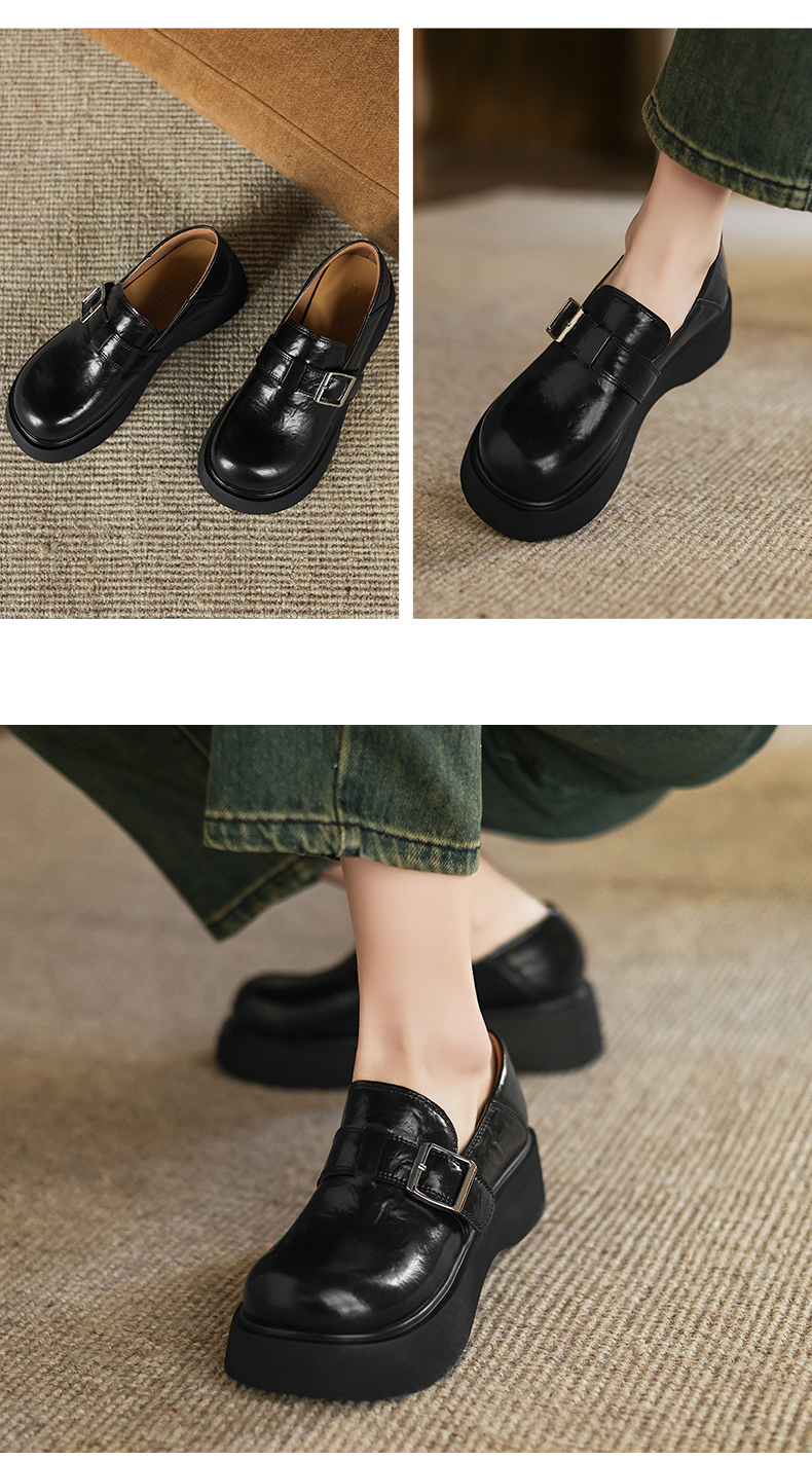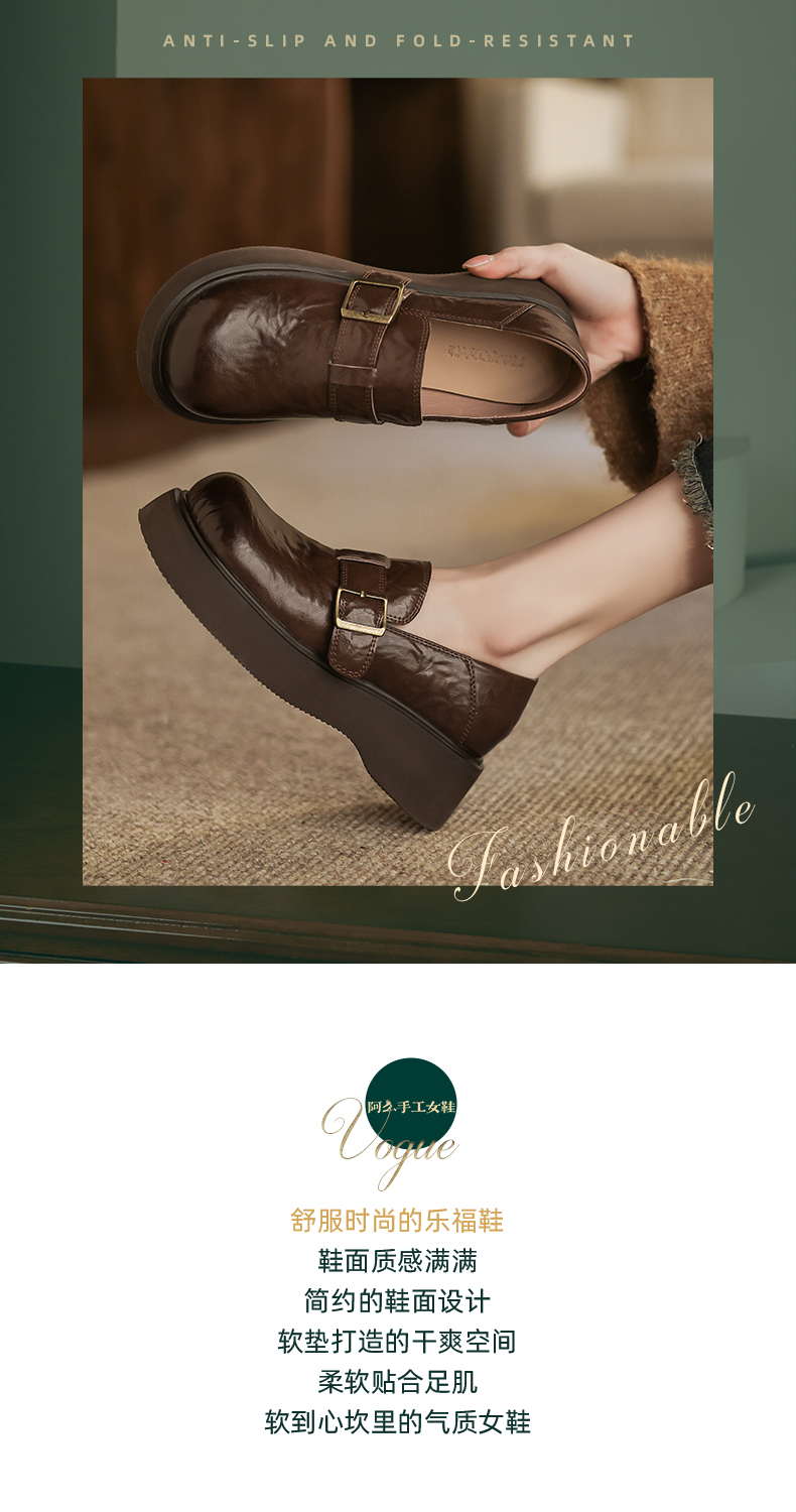 阿么手工女鞋复古厚底乐福鞋增高显瘦2025新款英伦风小皮鞋女4CM