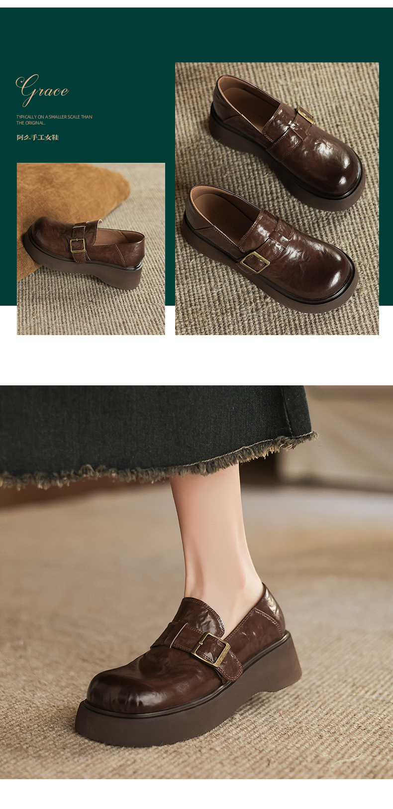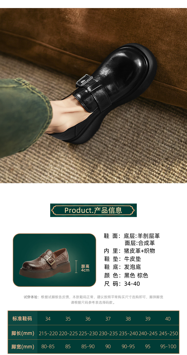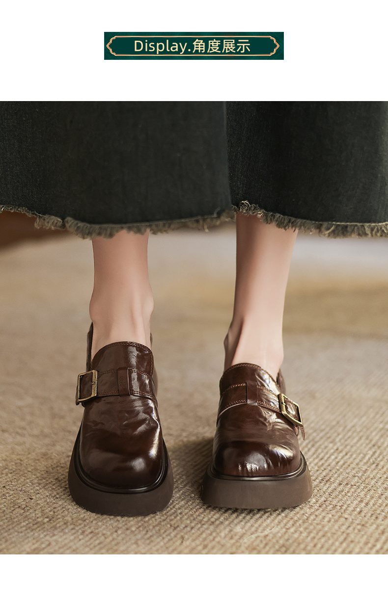 阿么手工女鞋复古厚底乐福鞋增高显瘦2025新款英伦风小皮鞋女4CM