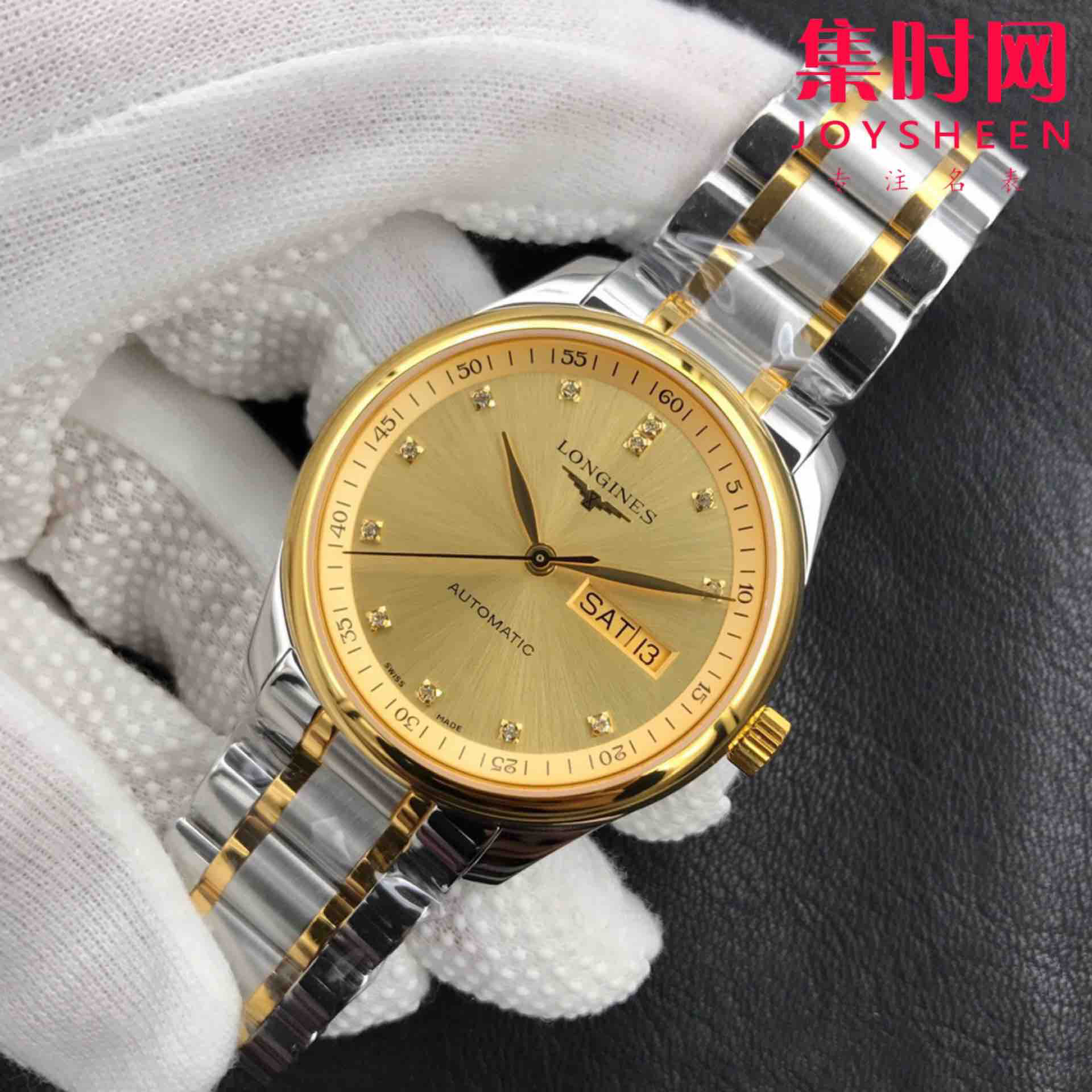 新升级版 浪琴v3名匠双历系列😎ི 间金数字面 经典爆款推荐,原装级蓝宝石镜面,表盘38.5mm 316L精钢表壳表带 2836-2自动上链机械机芯