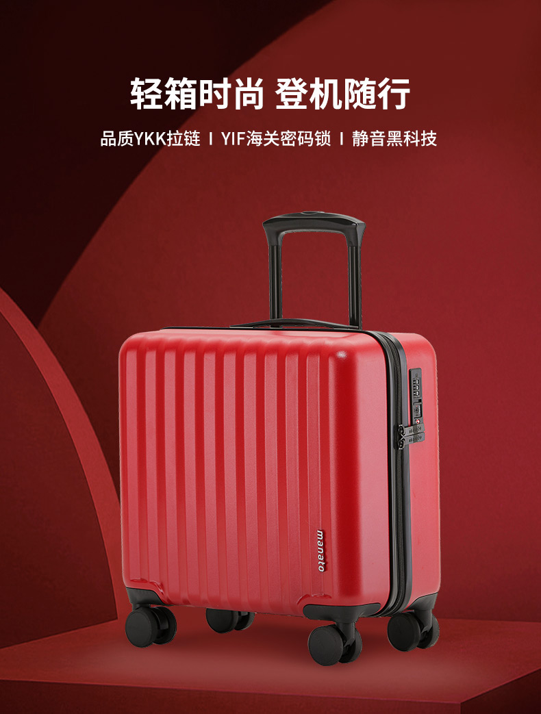 美纳途行李箱万向轮小型轻便旅行箱子16寸拉杆箱女红色登机箱18寸BK-09