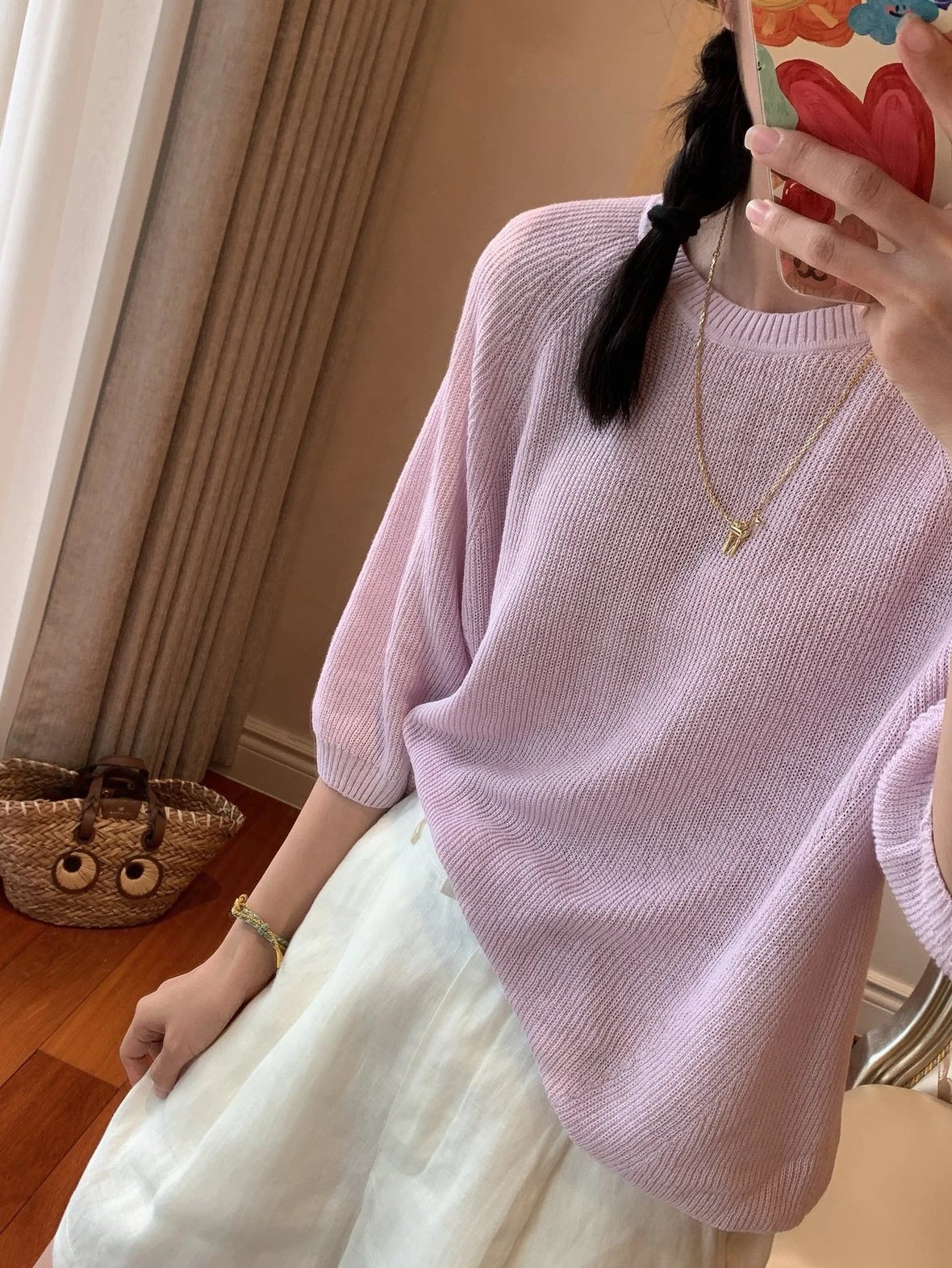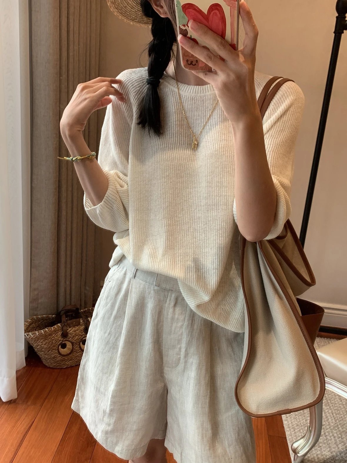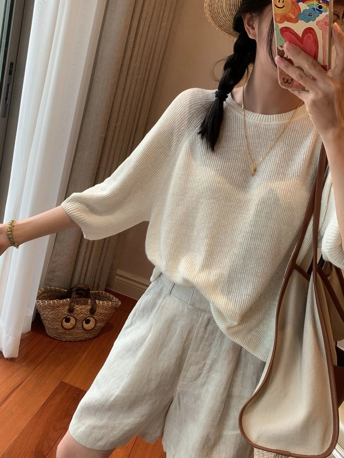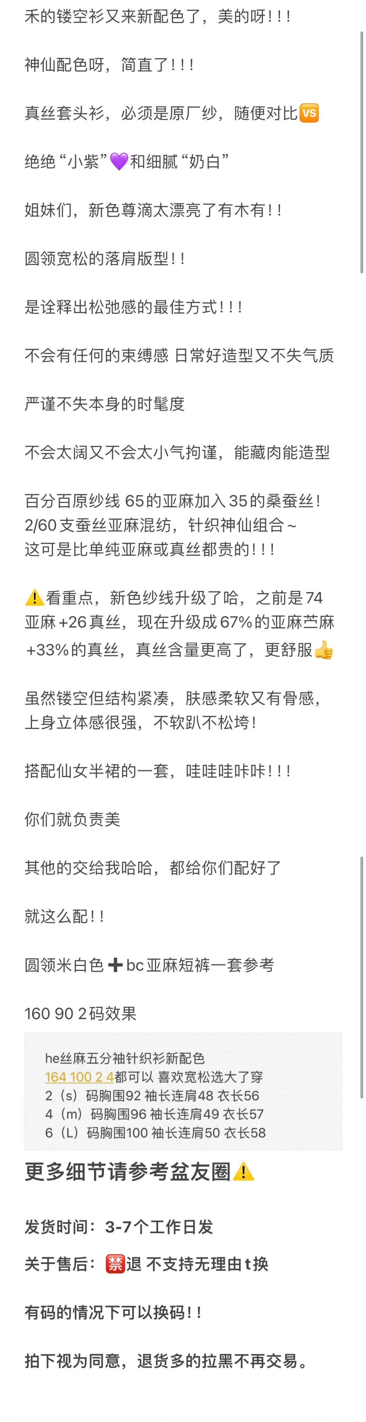 重磅推荐 ic真丝亚麻短袖罩衫 夏日必备 丝麻五分袖针织衫