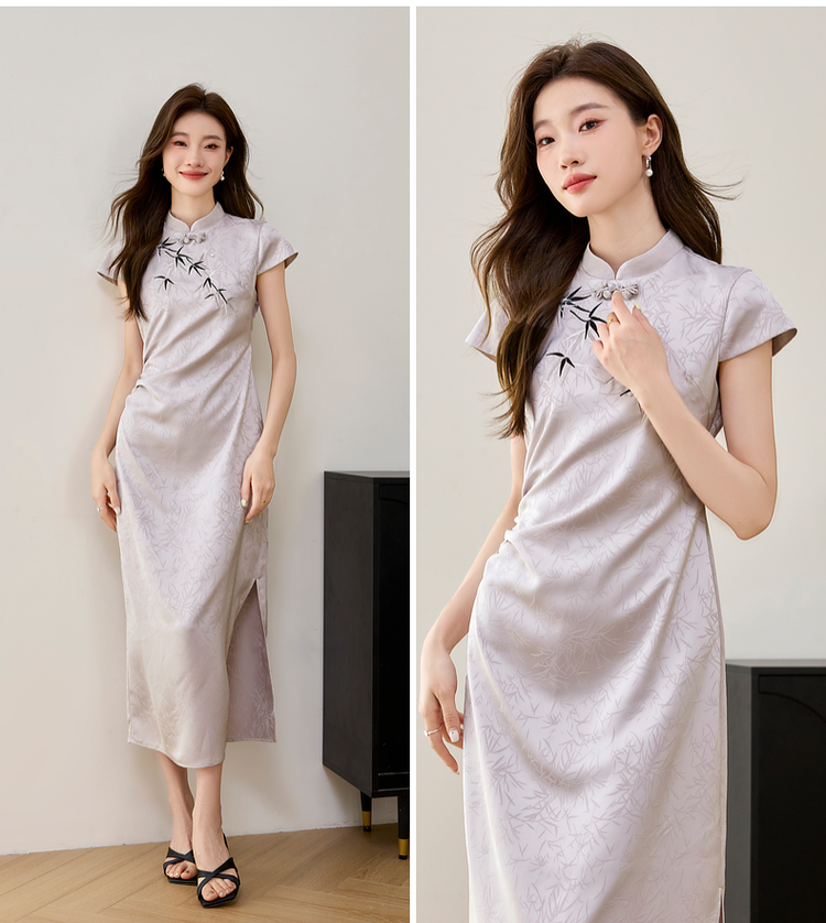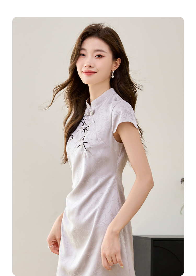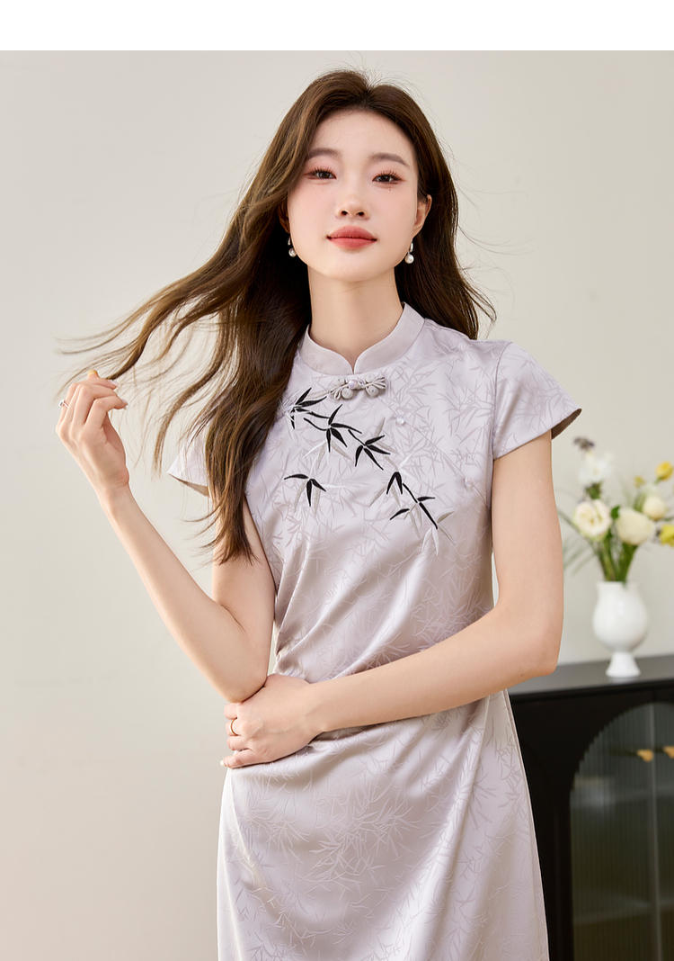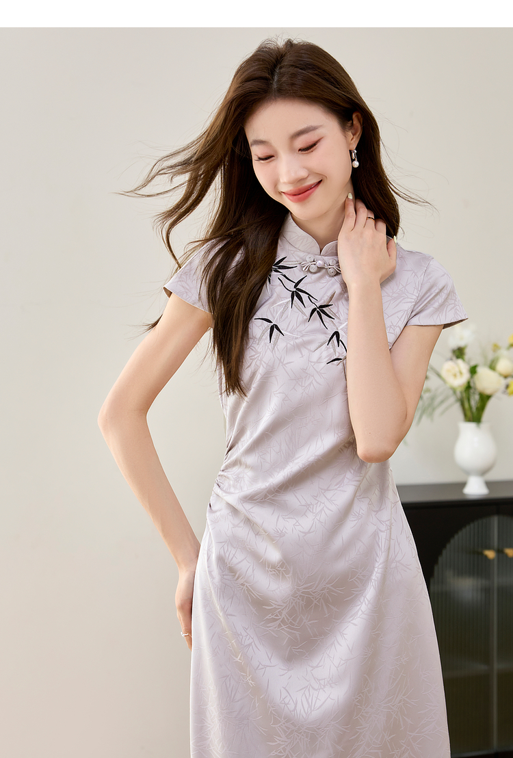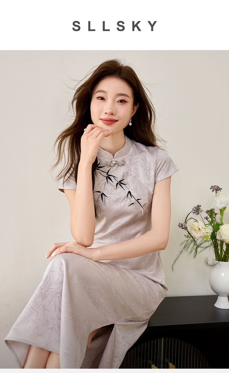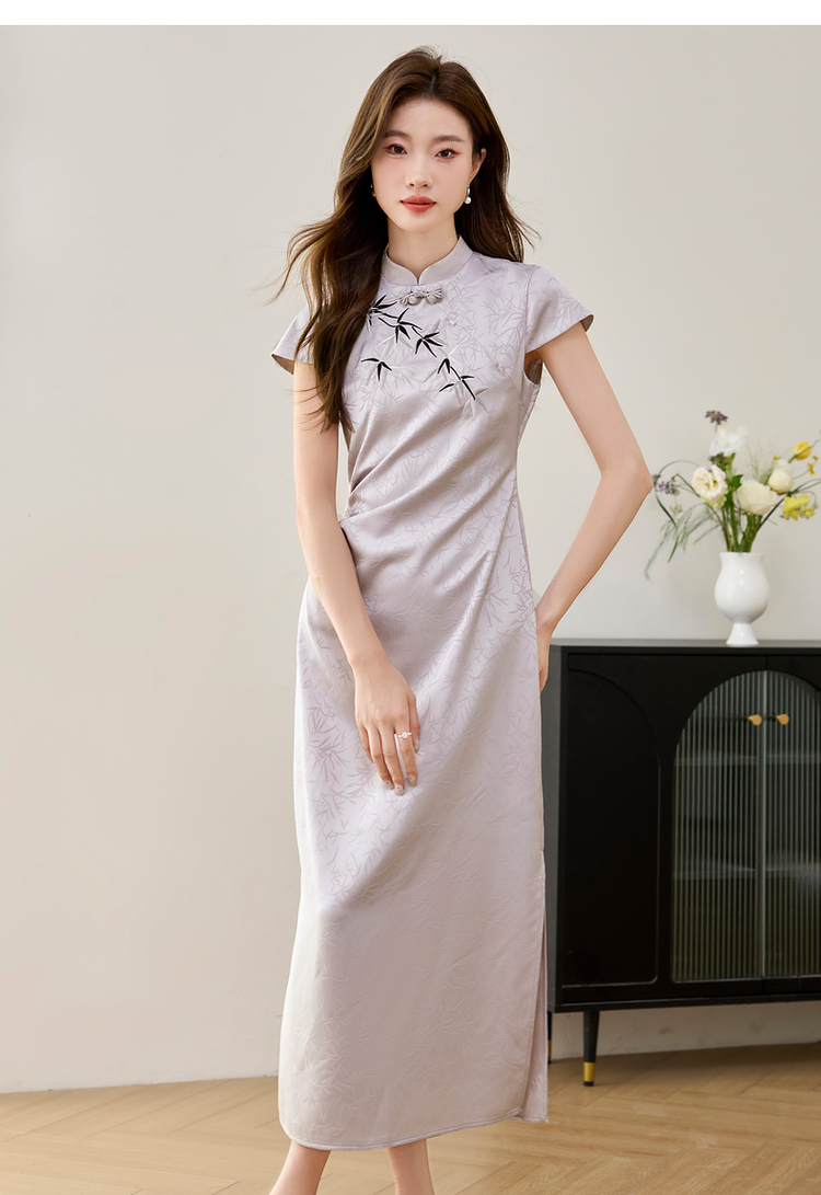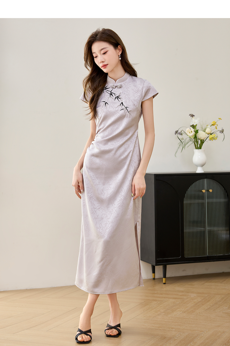 【周四狂欢价】熙世界《竹影》新中式国风盘扣立领开叉长裙子改良旗袍连衣裙夏