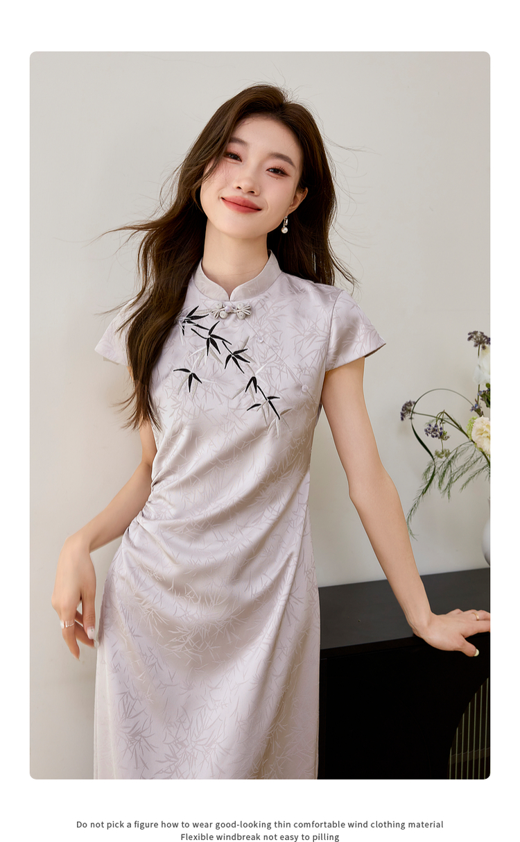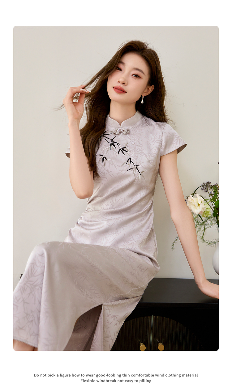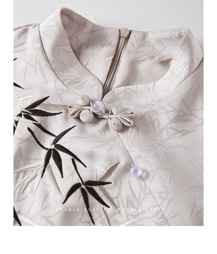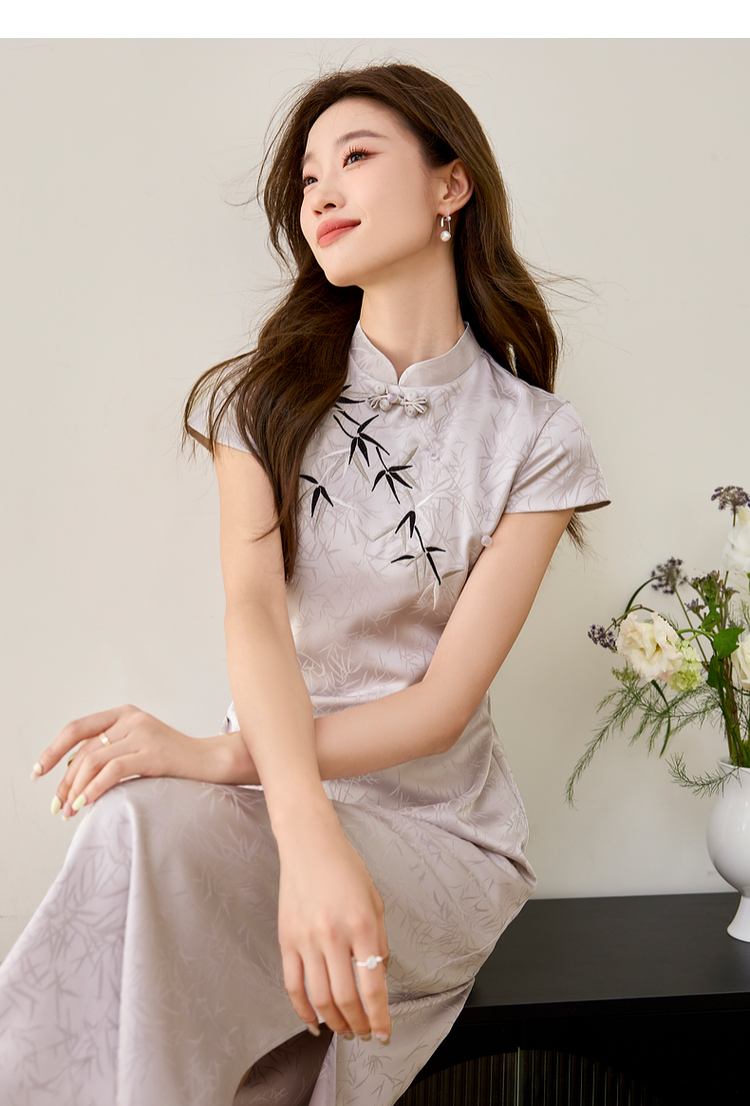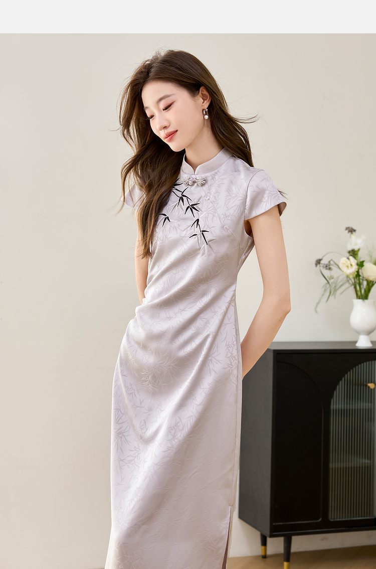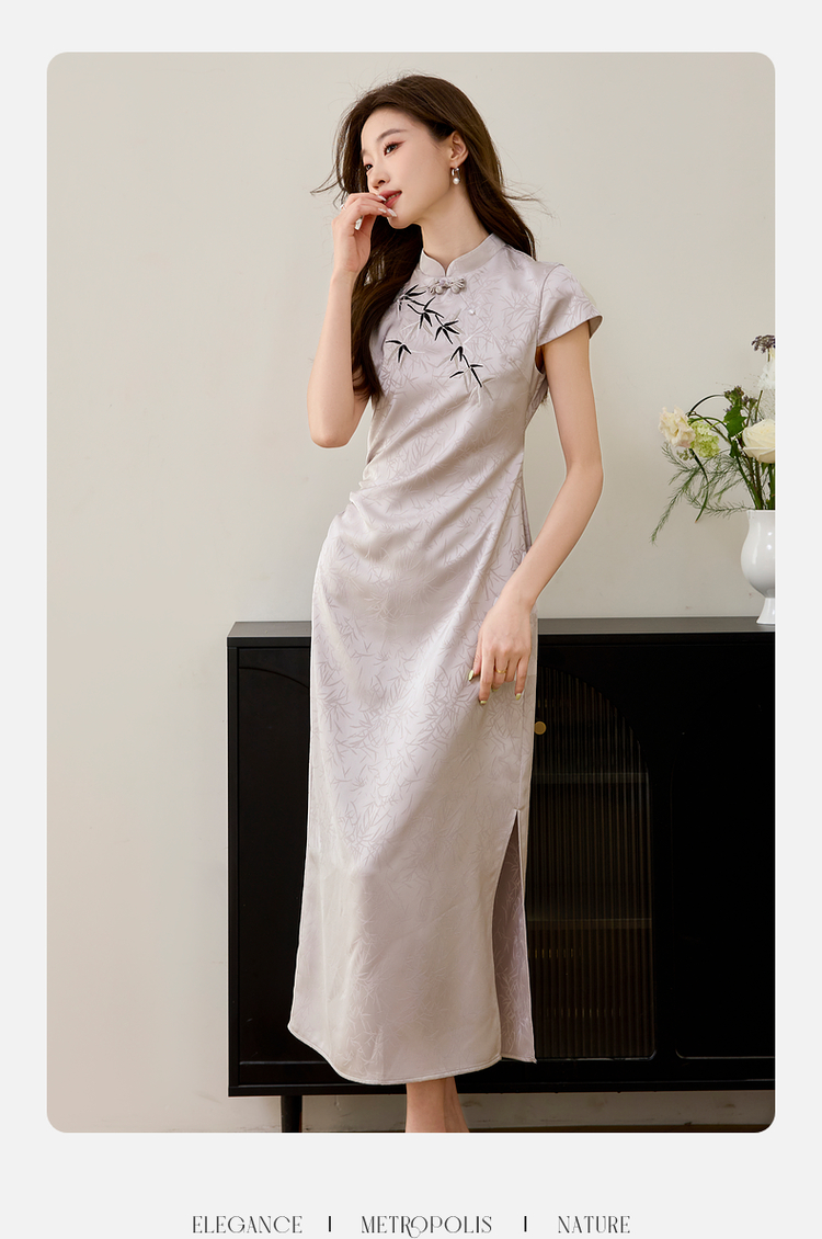 【周四狂欢价】熙世界《竹影》新中式国风盘扣立领开叉长裙子改良旗袍连衣裙夏