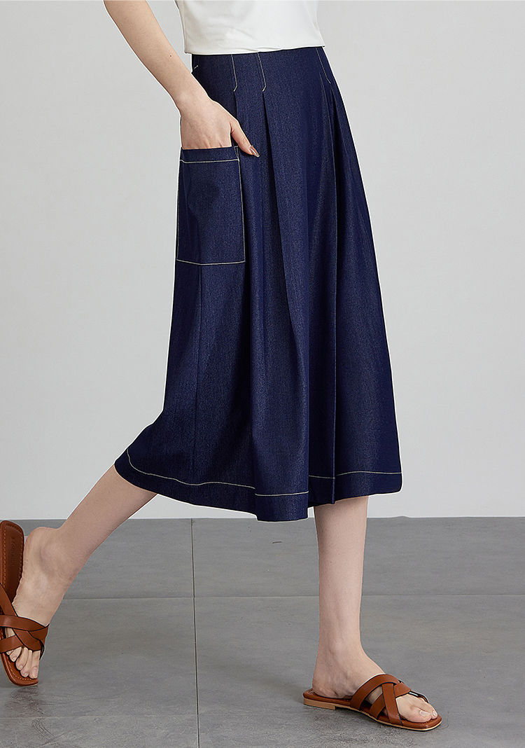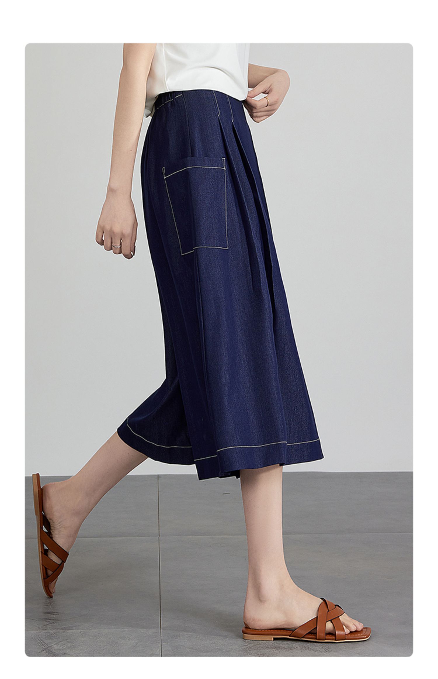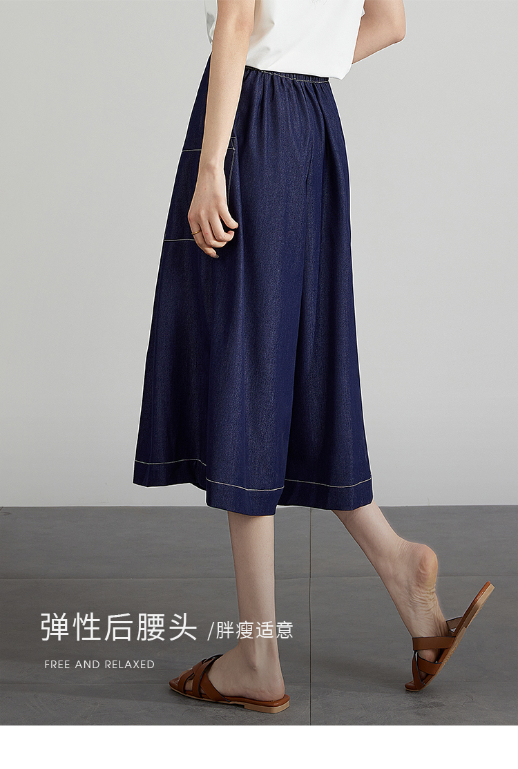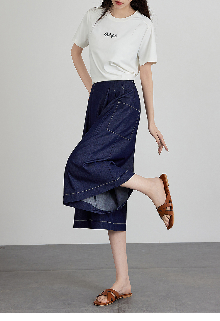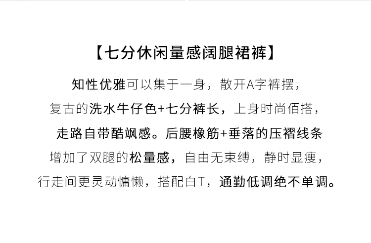【五折购】熙世界仿牛仔七分阔腿裙裤夏季休闲高腰工装风口袋宽松a字裤子