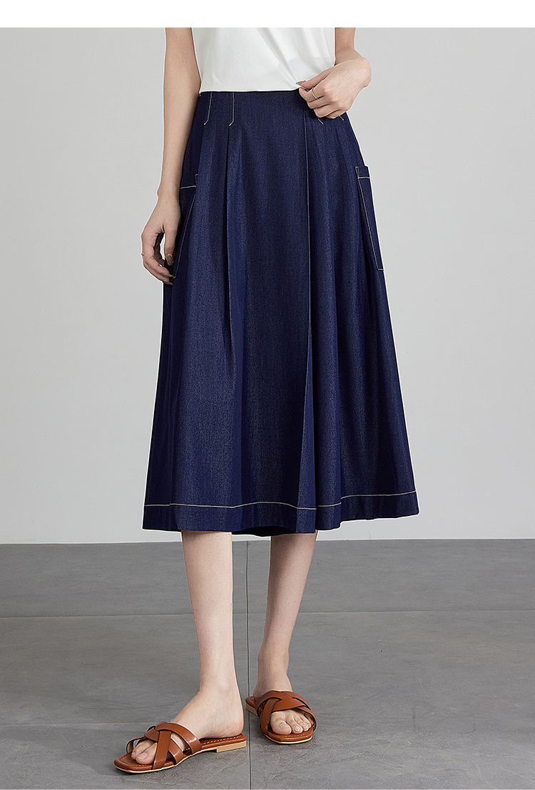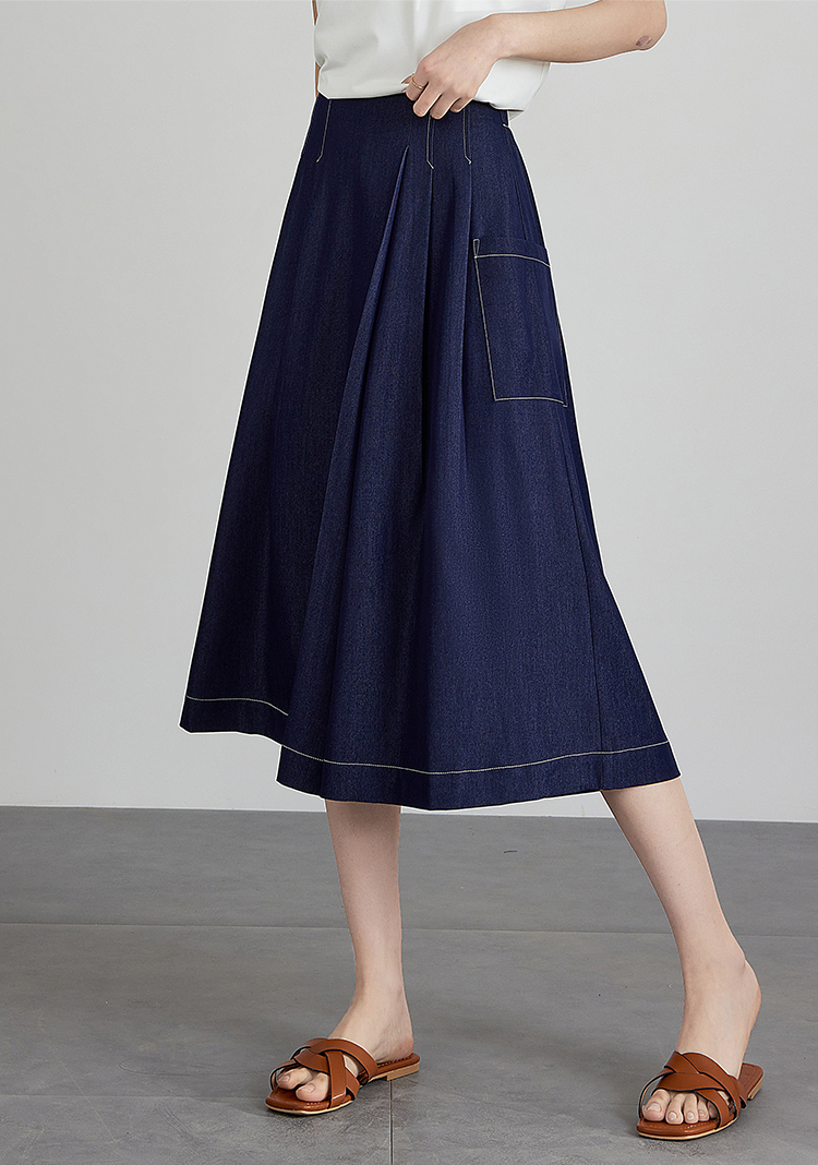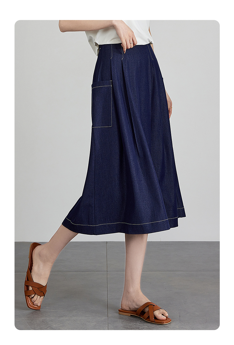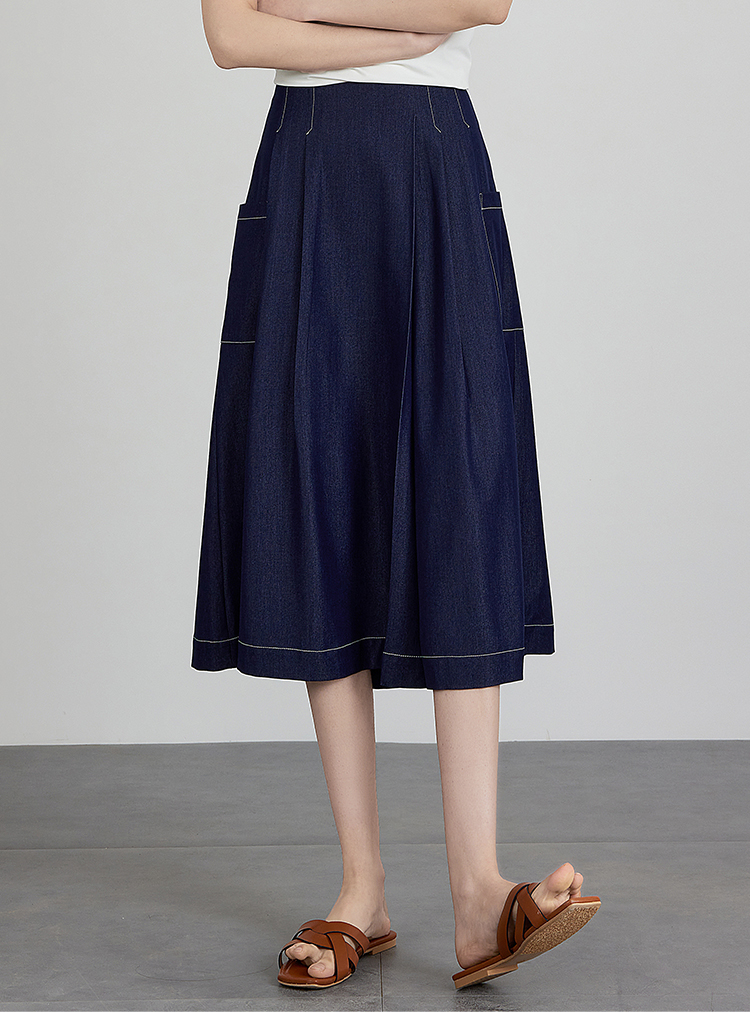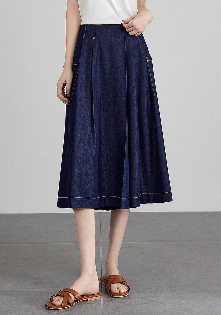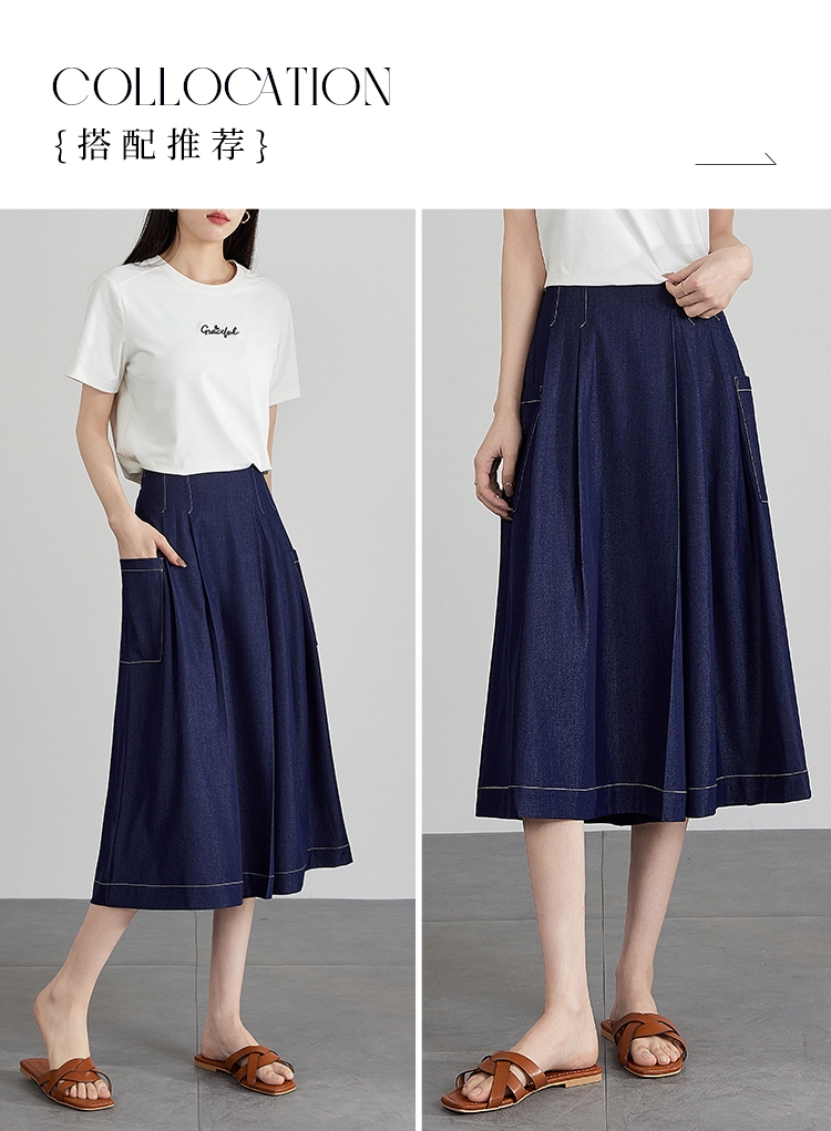 【五折购】熙世界仿牛仔七分阔腿裙裤夏季休闲高腰工装风口袋宽松a字裤子