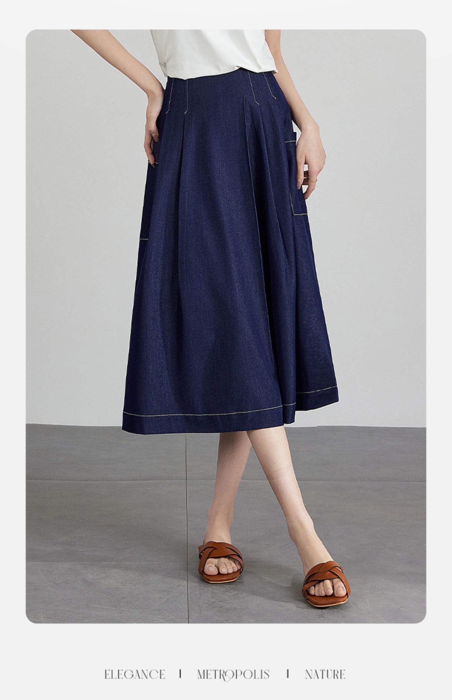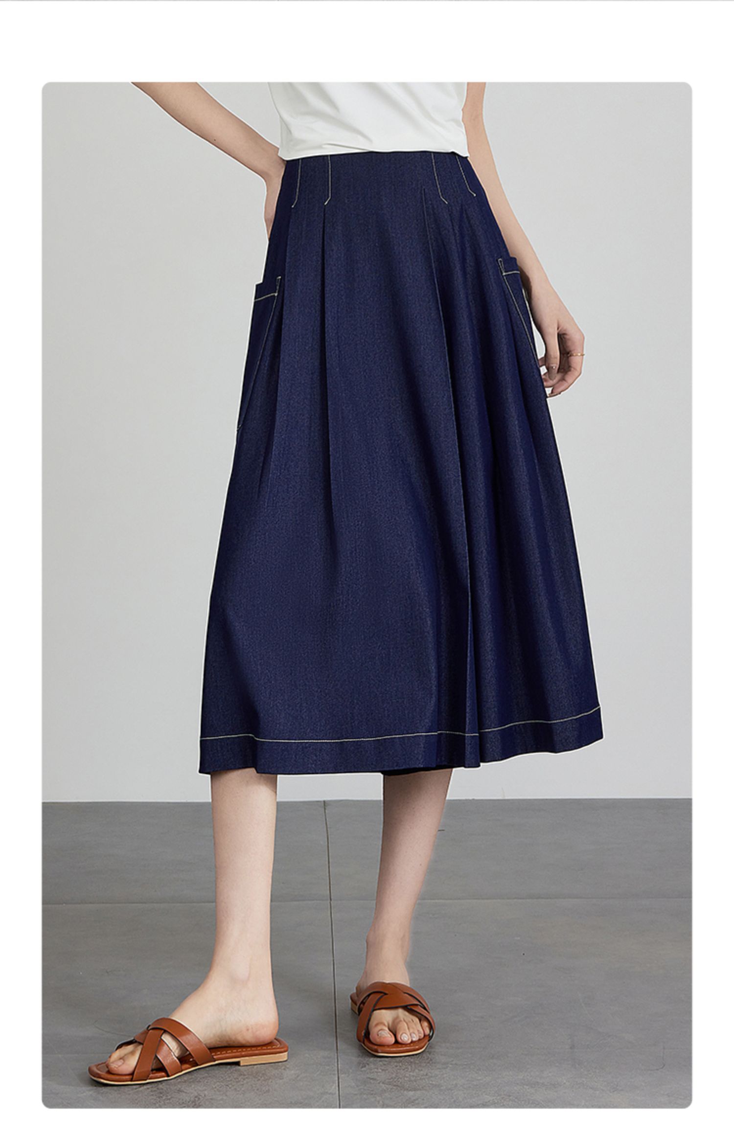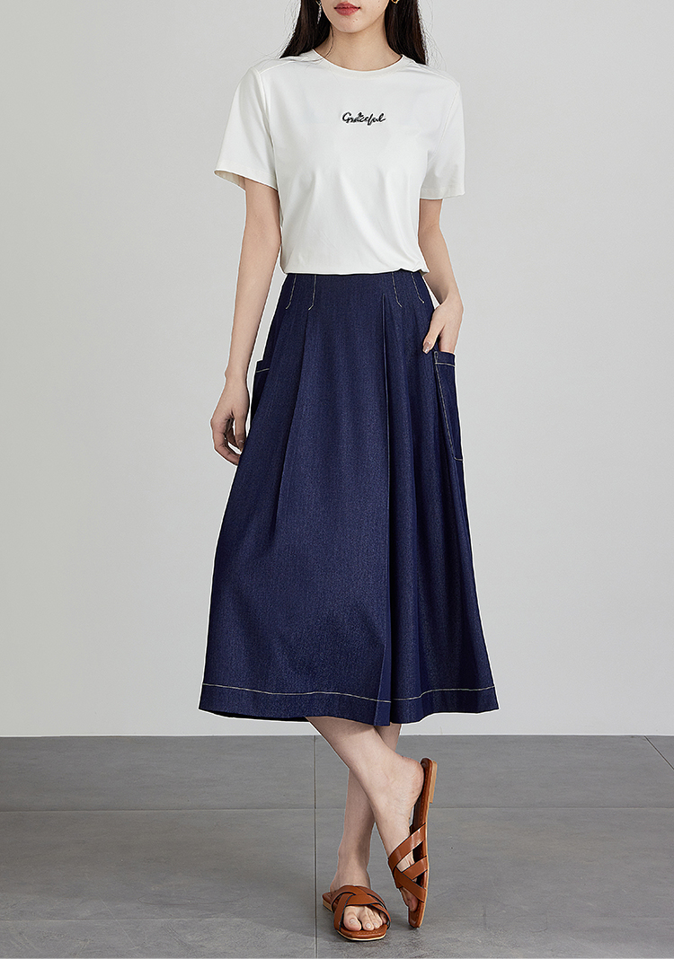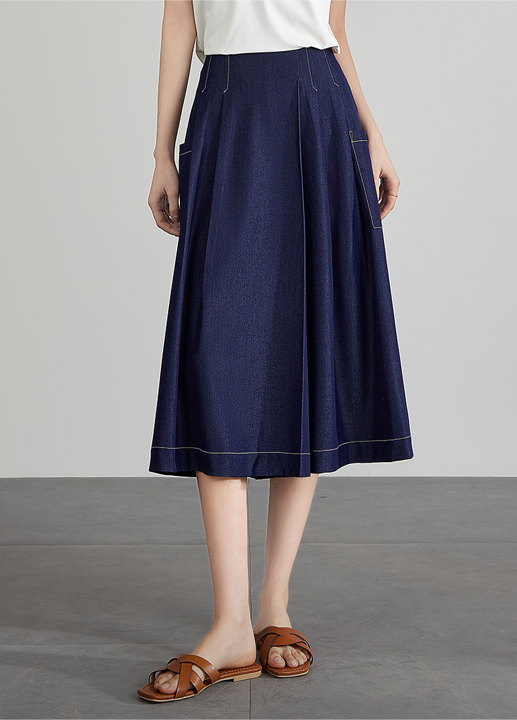 【五折购】熙世界仿牛仔七分阔腿裙裤夏季休闲高腰工装风口袋宽松a字裤子