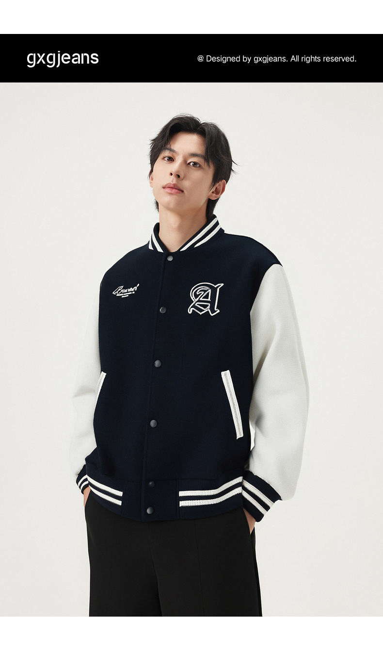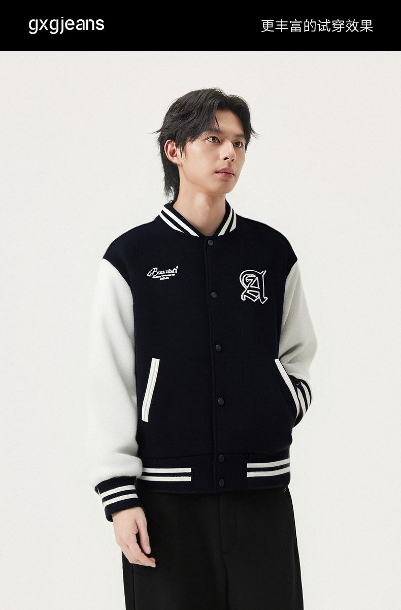 gxg.jeans男装 学院风撞色拼接宽松棒球领夹克外套男 25年秋热卖