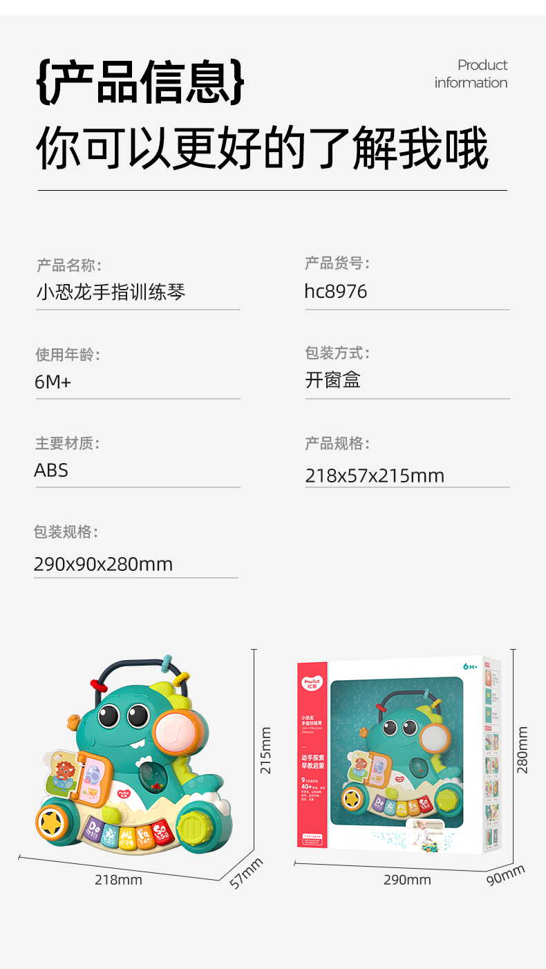 【汇乐】小恐龙手指琴探索训练玩具琴早教音乐电子琴6个月宝宝0-1岁