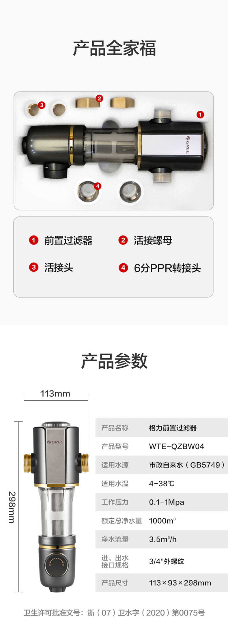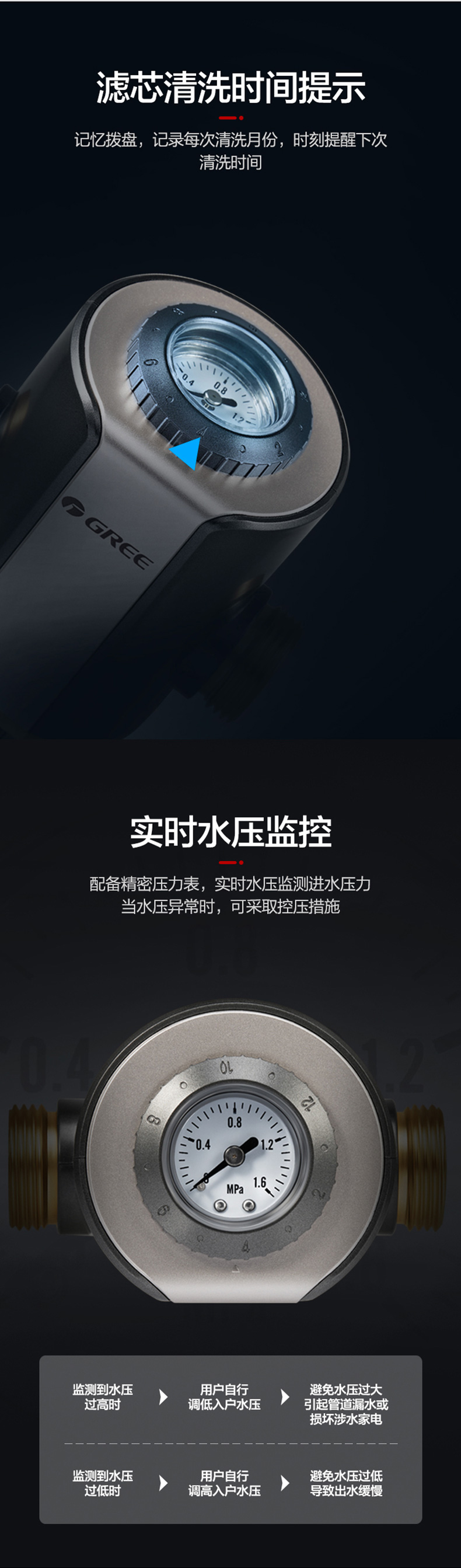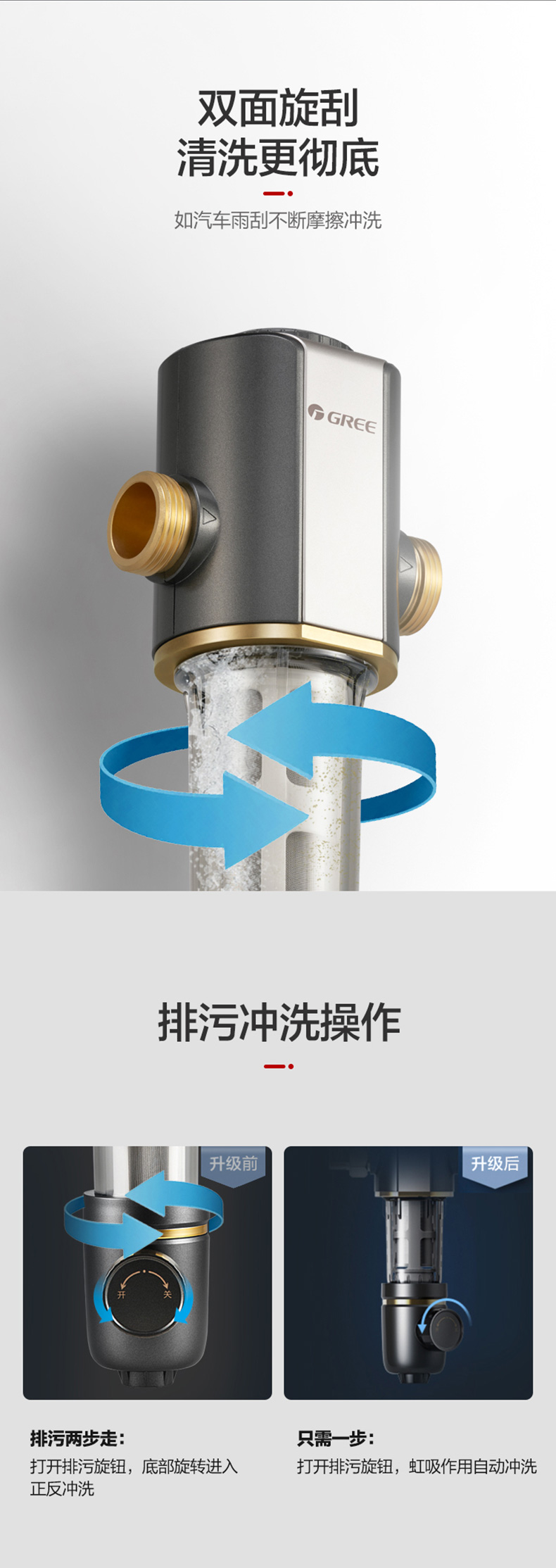 格力前置过滤器家用40微米自来水反冲洗大通量全屋中央净水器 WTE-QZBW04
