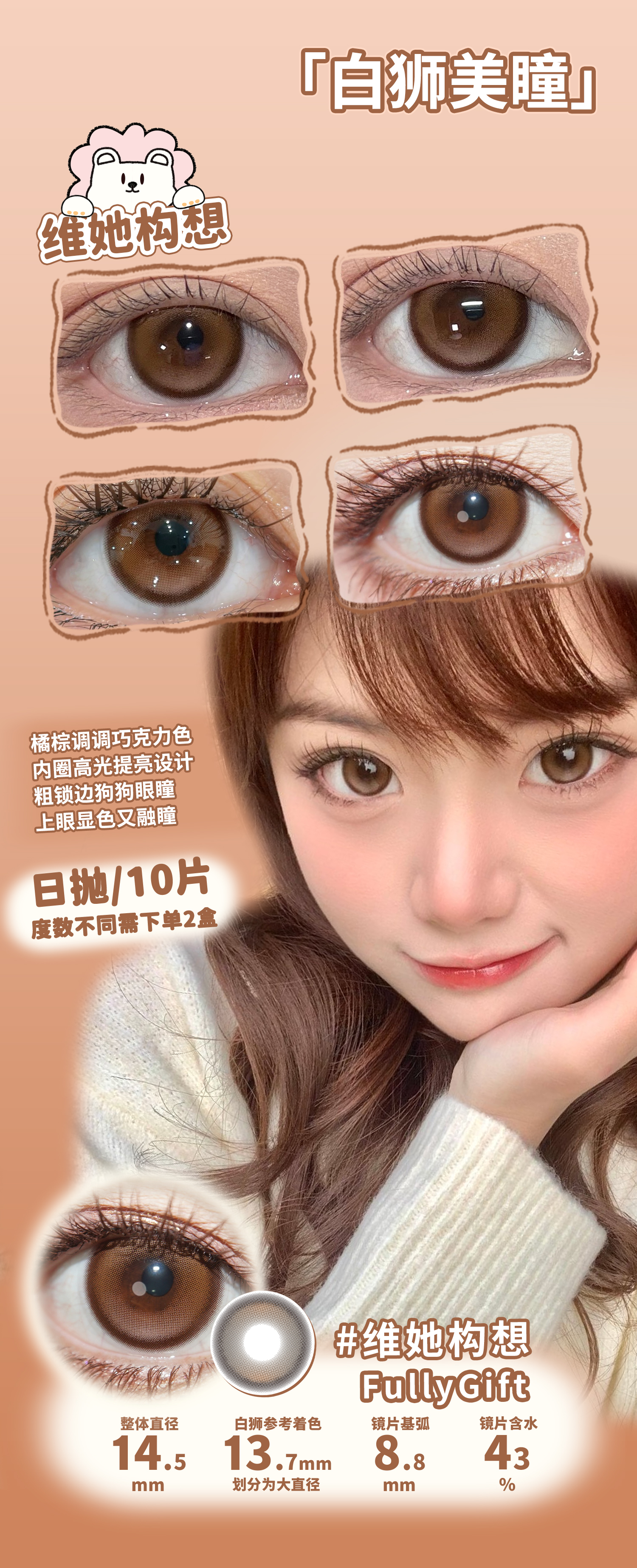 Fully Gift日抛 · 粉瓷光域&维她构想&息光脉络 14.5mm白狮参考着色大直径|日抛 一盒十片装