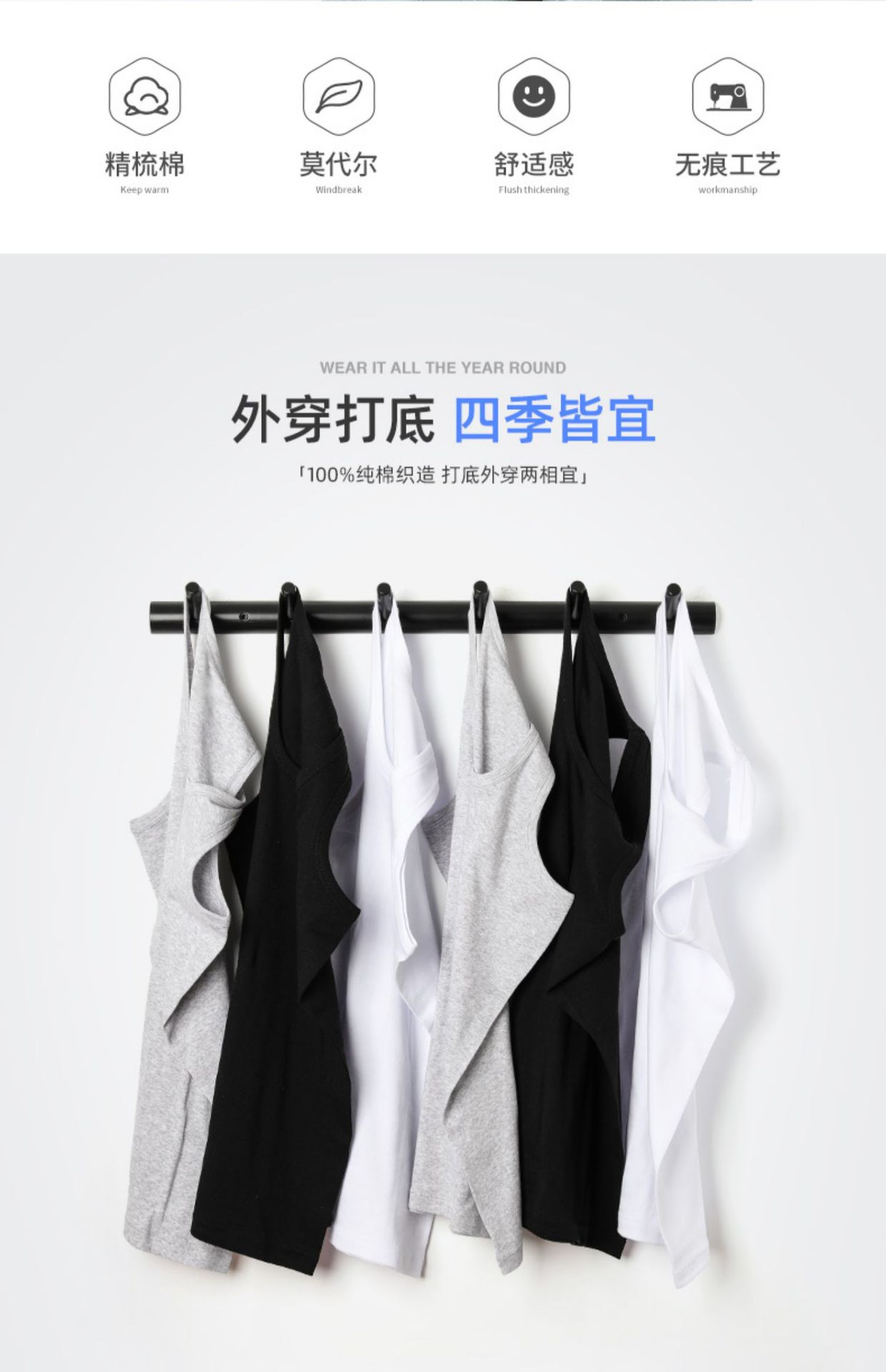 「3件装!数色可选」南极人新疆纯棉男士背心 秋冬打底内穿马甲薄大码运动无袖跨栏汗衫上衣