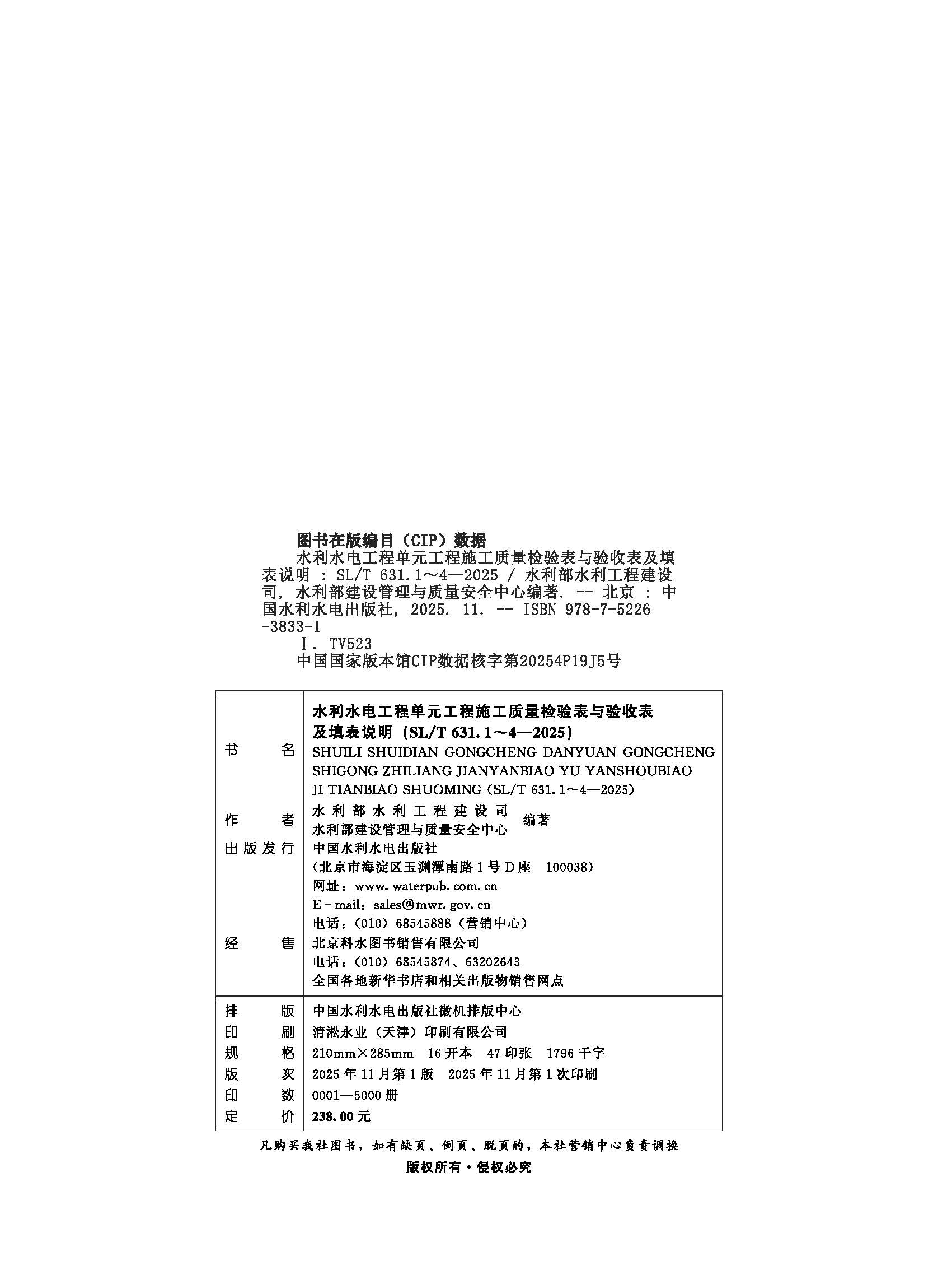 水利水电工程单元工程施工质量检验表与验收表及填表说明(SL/T 631.1~4—2025)