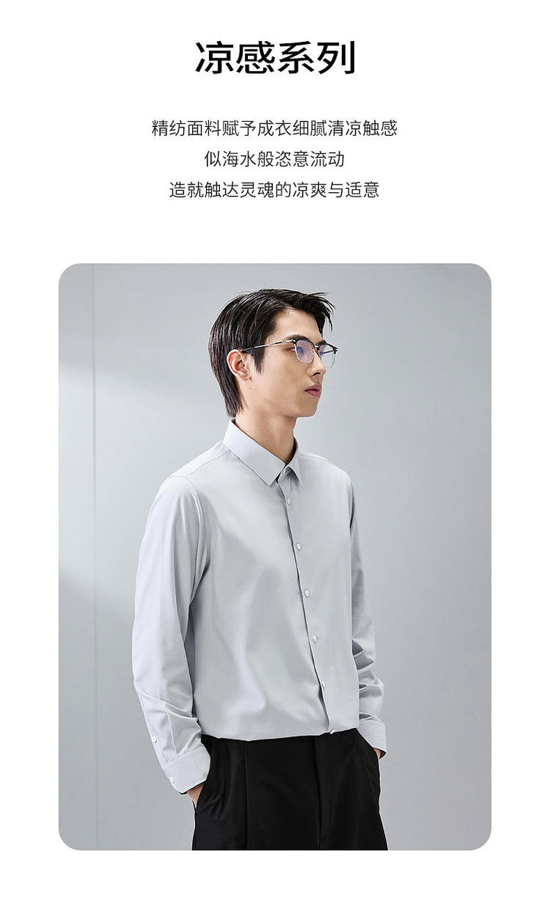 GXG男装【含桑蚕丝】25年春季经典百搭凉感纯色男式休闲长袖衬衫K&C