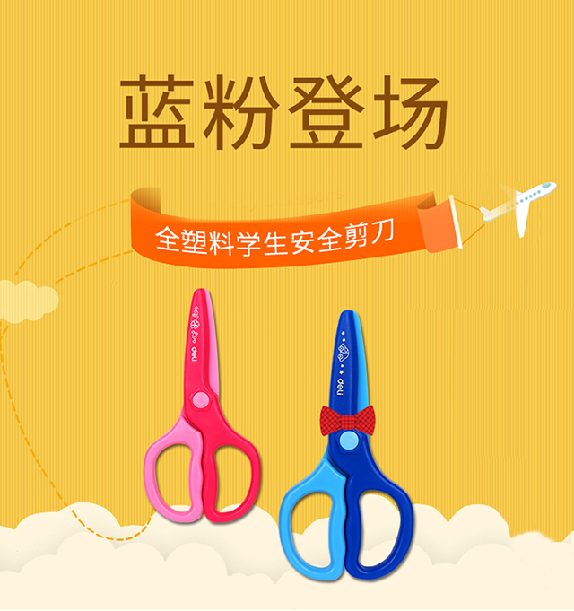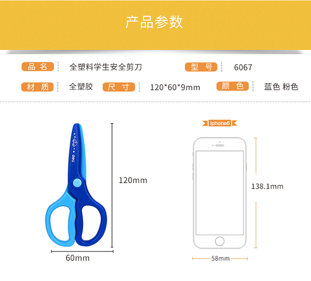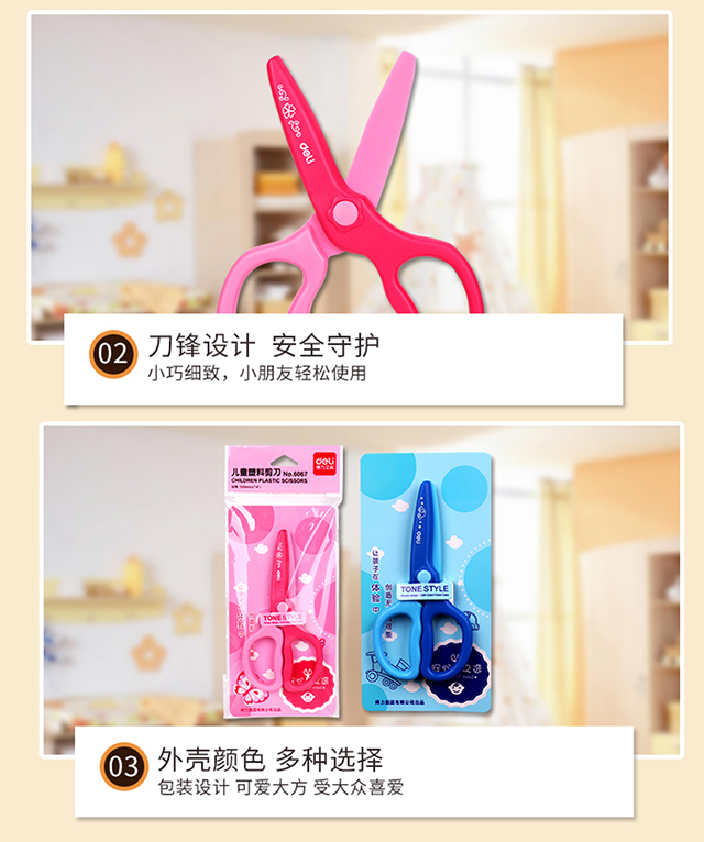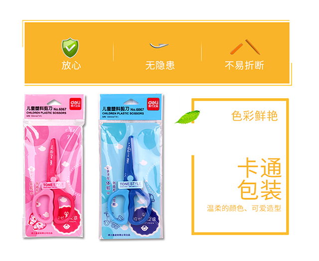 得力(deli)儿童安全剪刀/学生塑料裁纸剪刀 颜色随机6067