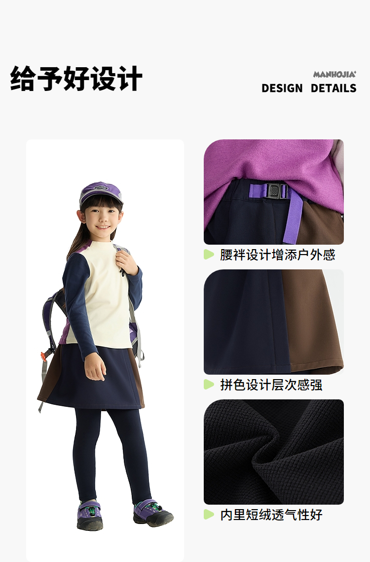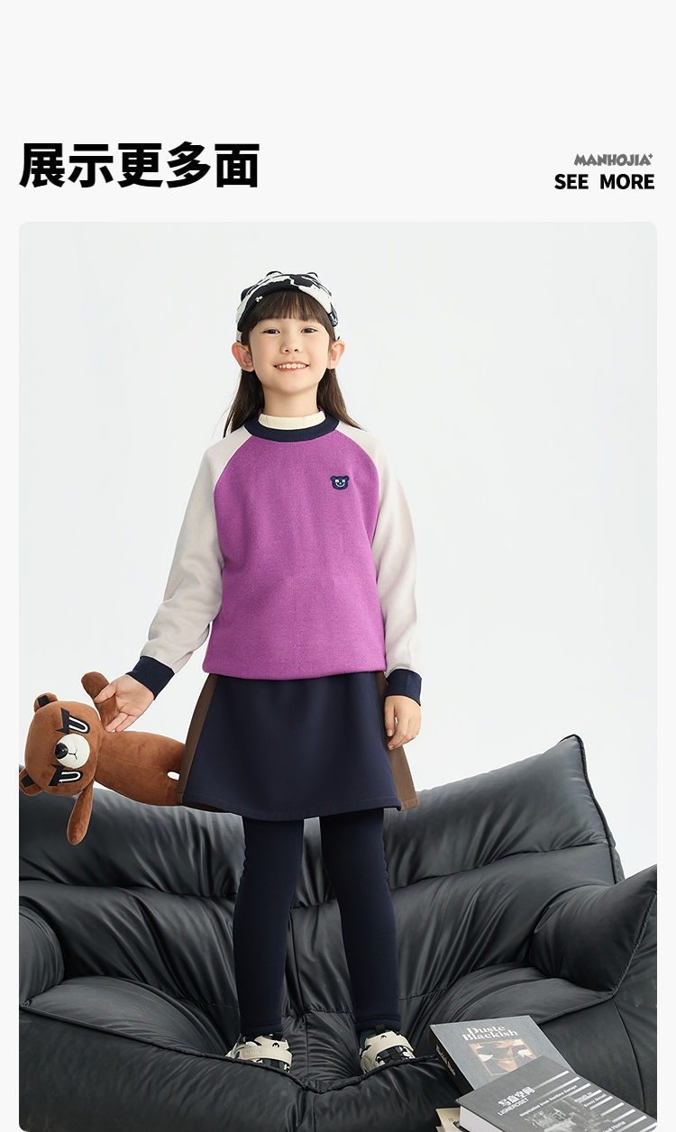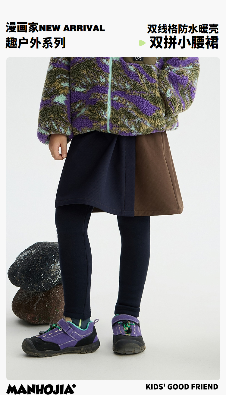 漫画家【双拼小腰裙】儿童腰裙25秋冬女童吸湿发热拼色A字腰裙