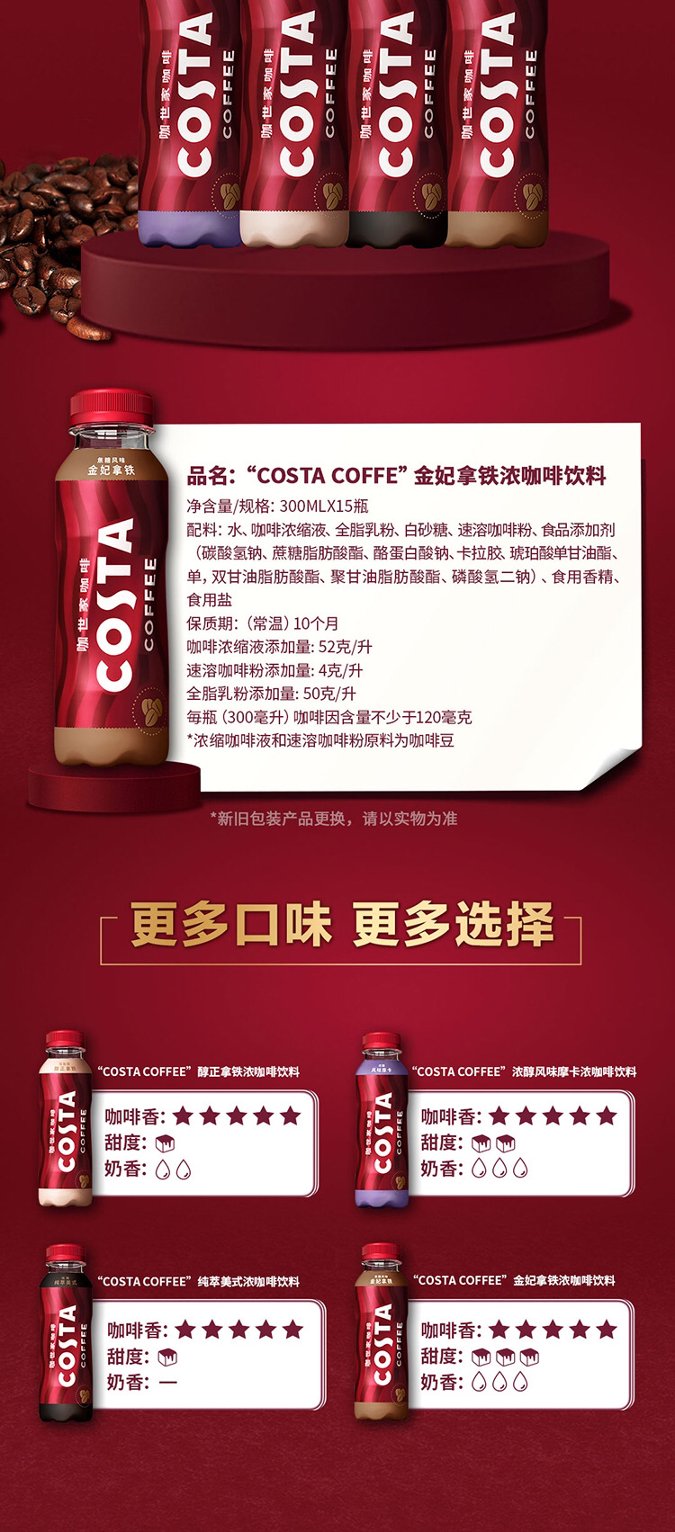 COSTA COFFEE金妃拿铁咖啡饮料 300ml/瓶